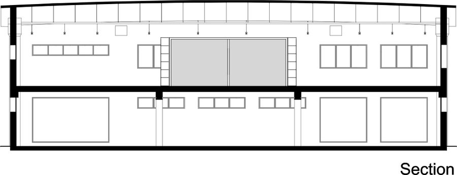 On the middle floor, this hall communicates visually with manufacturing facilities.