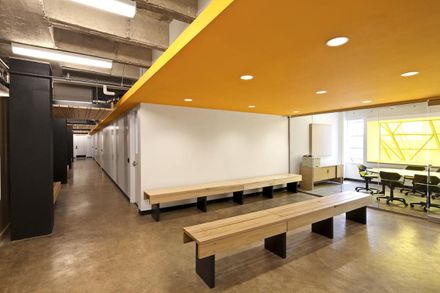 The design respects the atrium with new window boxes that house personal practice spaces. The boxes allow the color palette of each floor to be expressed upon entry.