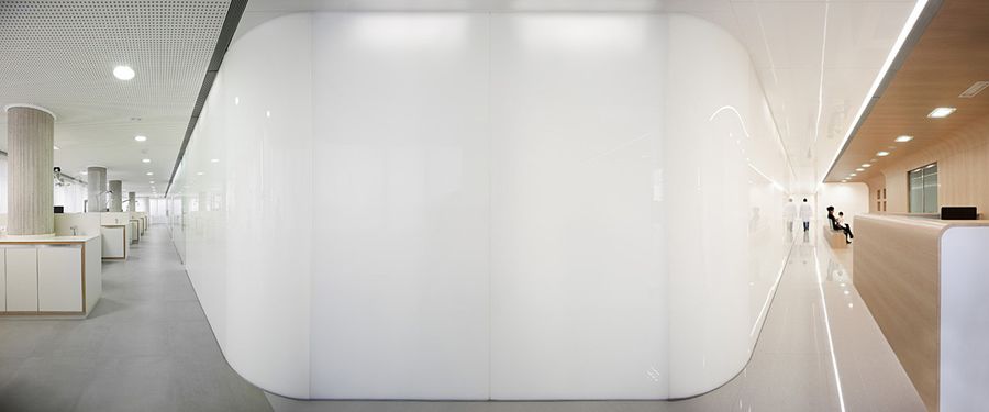 Glass and light form and alliance in order to cover all the spaces. The medical rooms are placed next to the perimeter of the façade (which is placed in the north) in order to take advantage of the constant natural lighting.