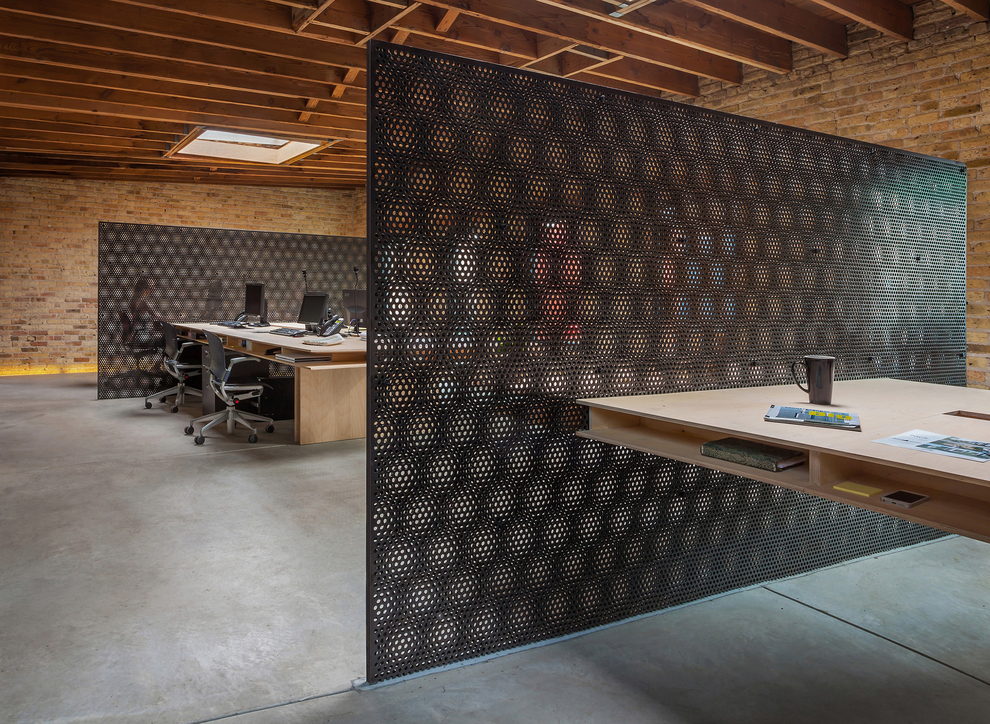 These striking sheets of metal are designed to be visually intriguing, enhancing the raw qualities of an existing skin. To further separate the office from its adjacent zones, we introduced a continuous.