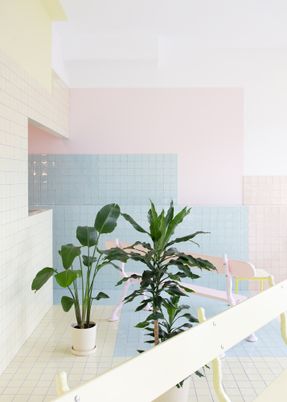 The spaces in ORIGIN are about the progression towards that state, through colours, materials, living beings (plants) that accompany the experience of floating naked on a highly salted water pod.