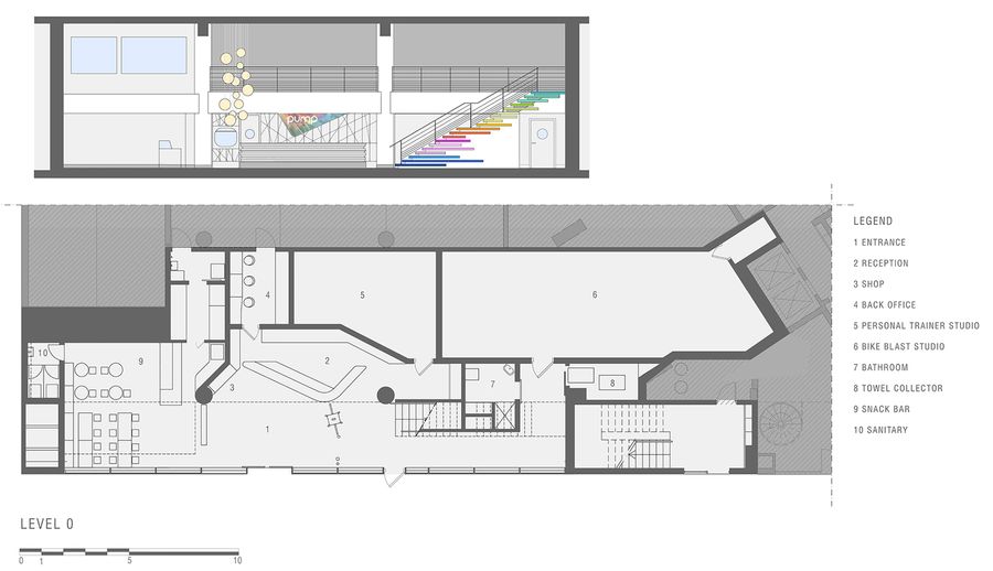 The PUMP Gyms' identity is strengthened by the intuitive, functional and simple way of organizing the space layout.