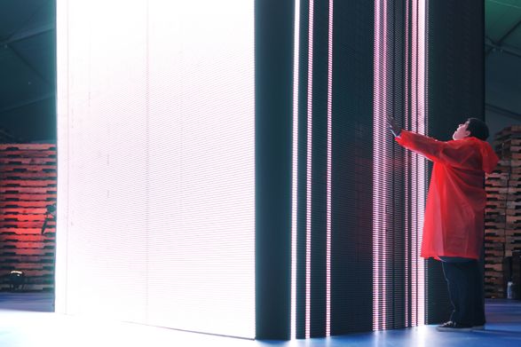 This interactive installation invites people to say something inside a tunnel all build with LED panels and at the same time to listen to someone’s voice recorded minutes before.