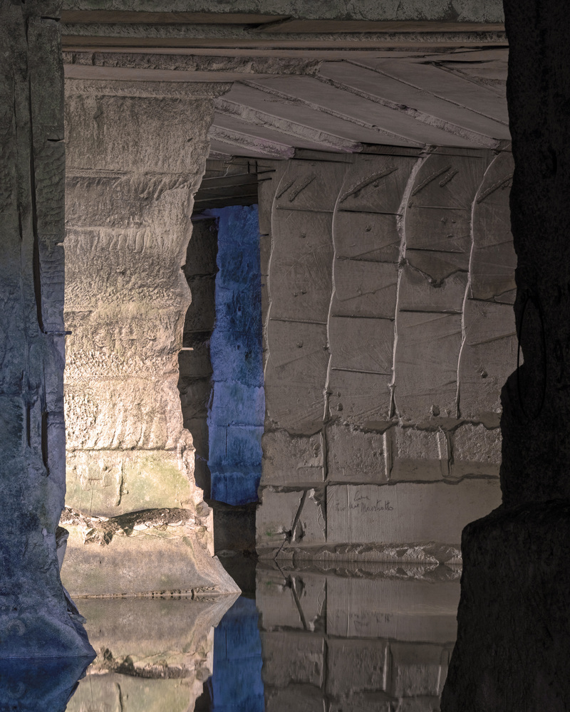 The romantic and tectonic qualities of the quarry with the carved stone and the filtered water were already so strong that minimal interventions were required.