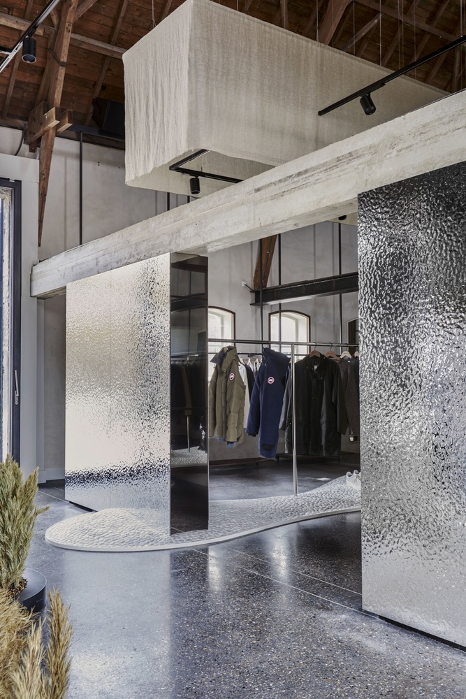 While the design is unexpected, the store never feels overwhelming. Display racks and fitting rooms are each given their own defined space to avoid distraction and encourage focus.