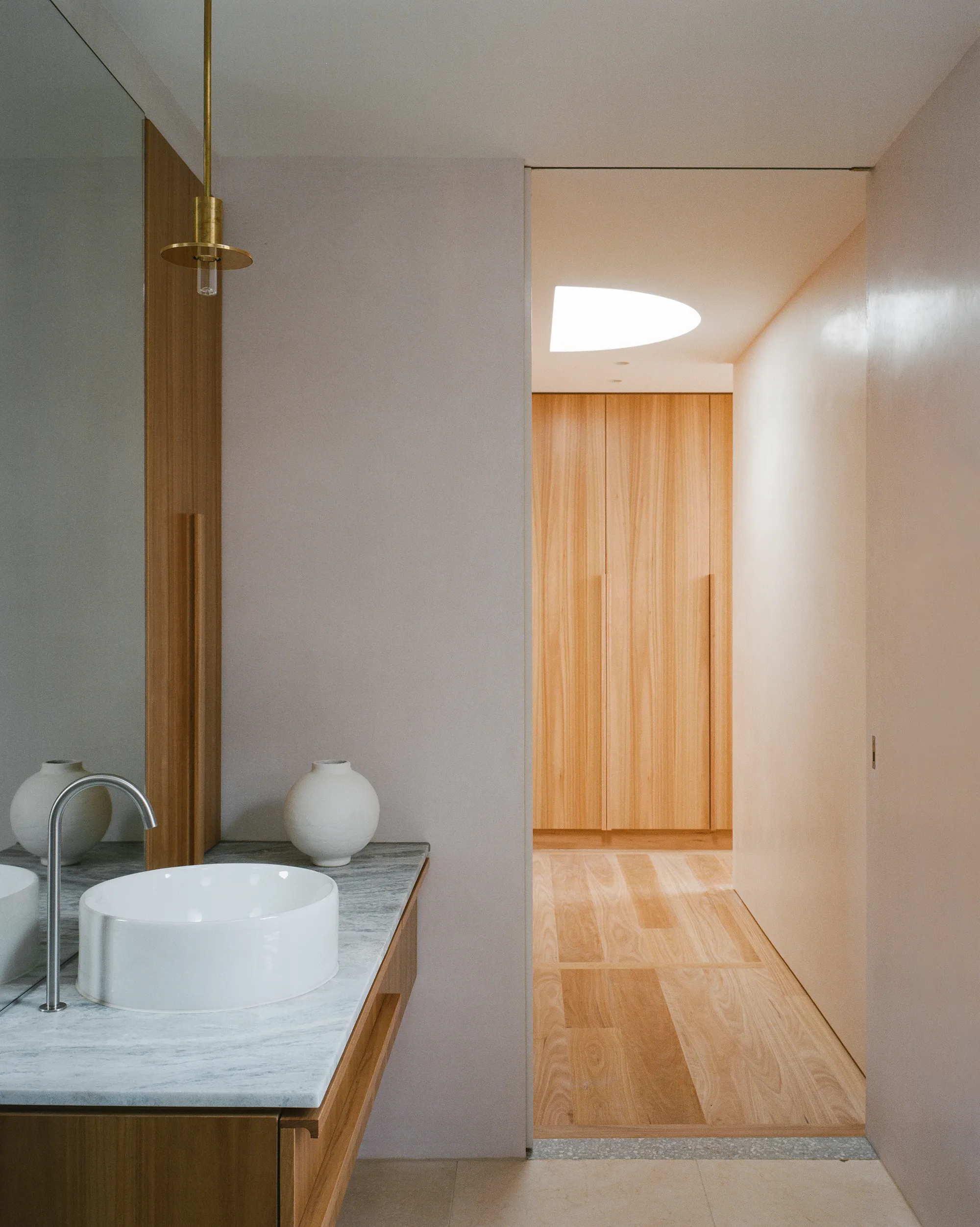 The theme is also referenced throughout the apartment with smaller semi-circular and circular oculus where natural light was needed.