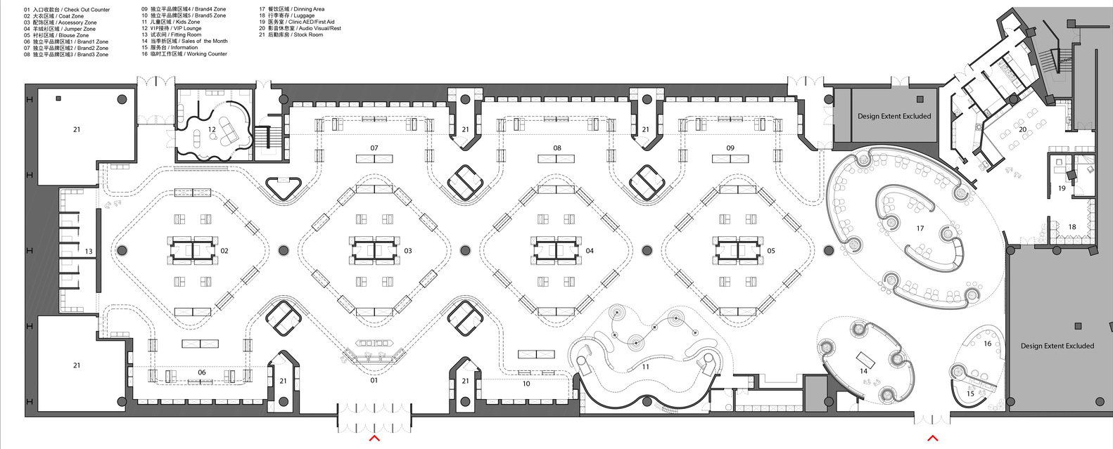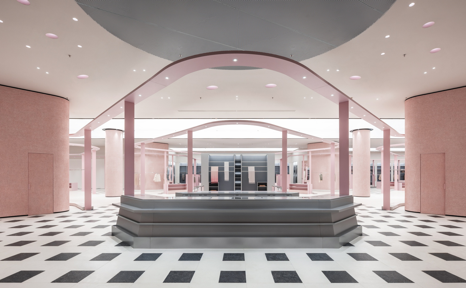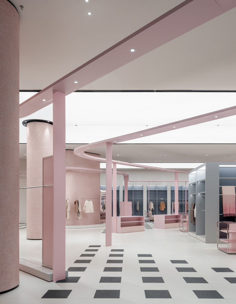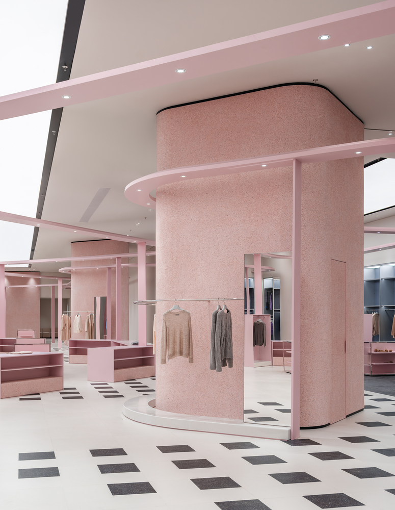 Circulation is therefore central to its success, with the floor plan organized around four central islands that allow the act of shopping to be experienced as either a continuous loop or through interconnected figure-of-eight clusters.