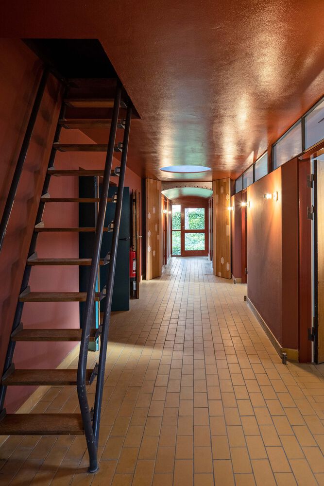 Damaged bricks have been repaired with visible traces that tell the story of the building's age and wear, and the building has been limewashed and painted based on the color scheme of the original architect.