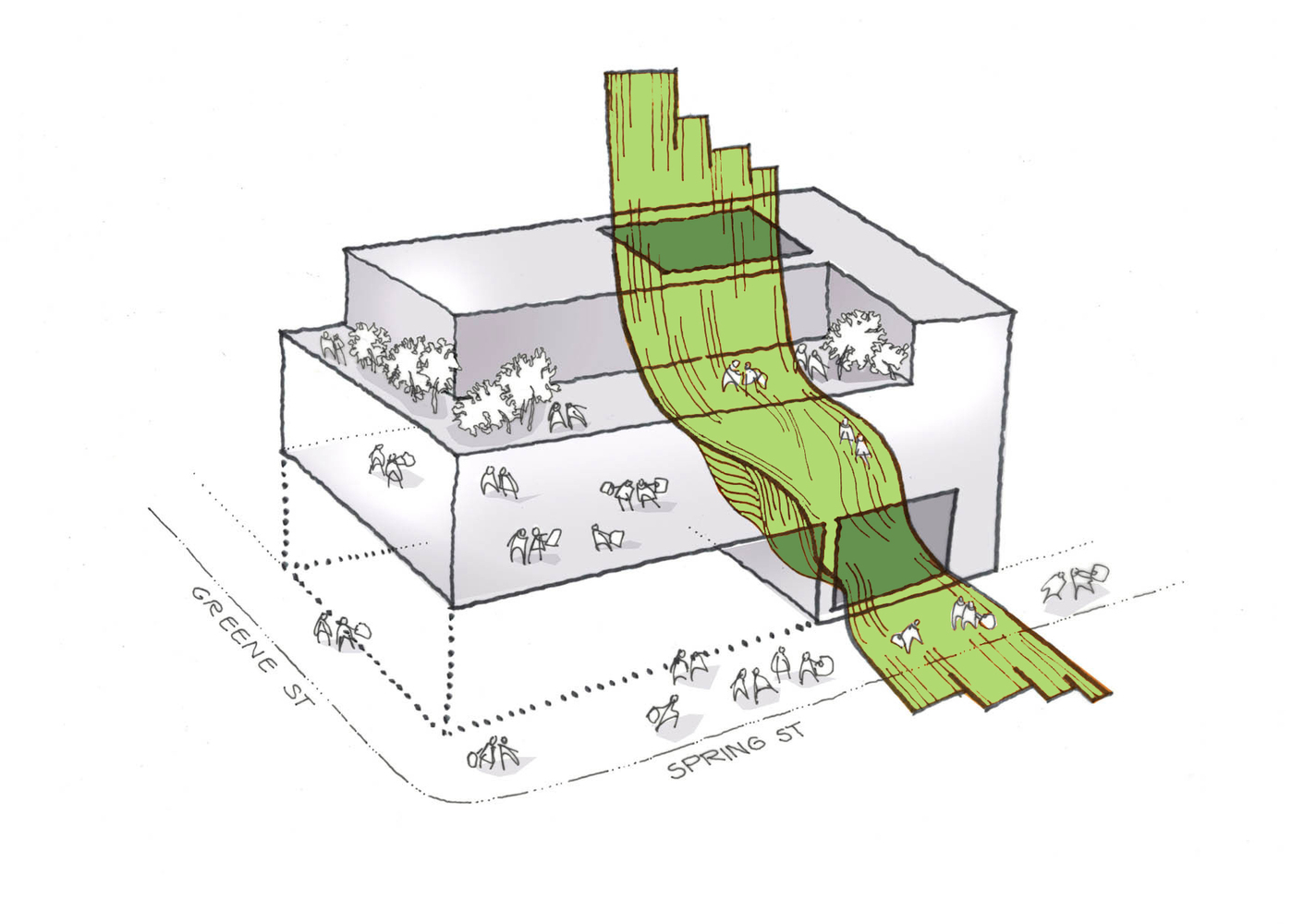 Neil Hubbard, Partner and Group Leader of Heatherwick Studio, said: "At Heatherwick Studio, every project begins with a question. For the SoHo boutique, it was simple: how do we encourage people to journey upward from such a narrow entrance?