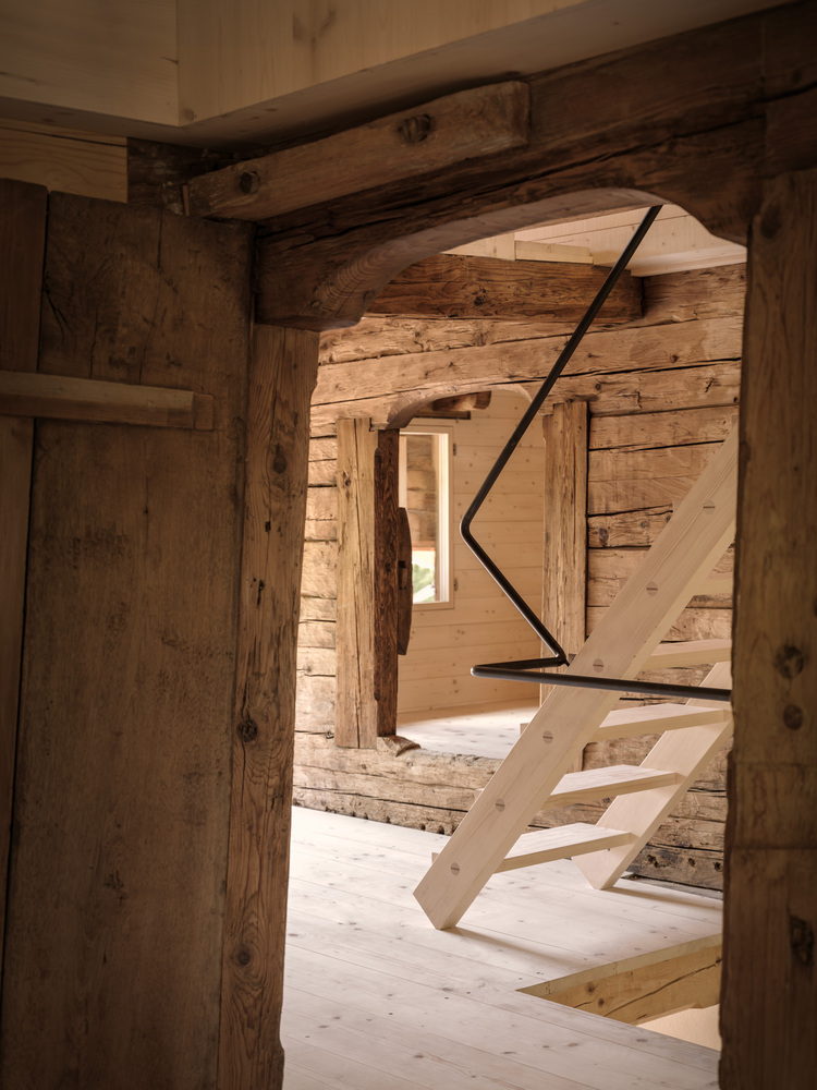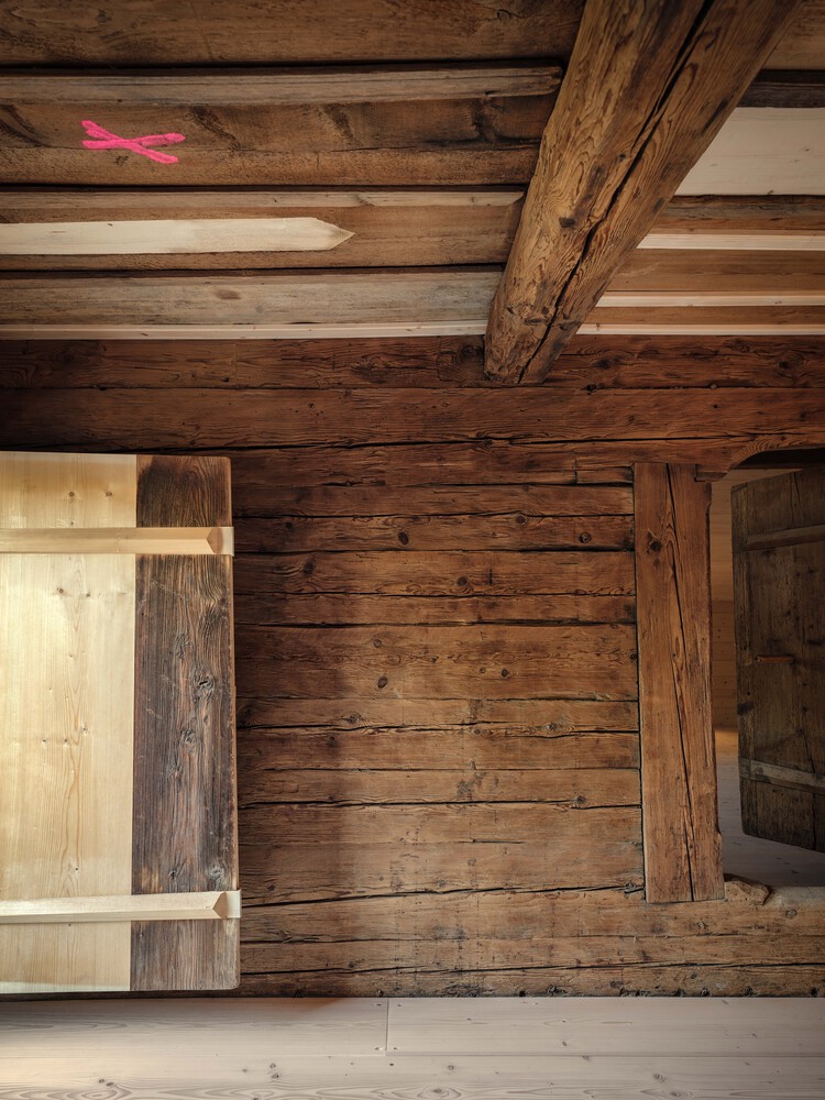 The greatest challenges stemmed from past interventions. Around 1800, part of the log structure on the ground floor had been replaced with masonry — a common practice in the area at the time.