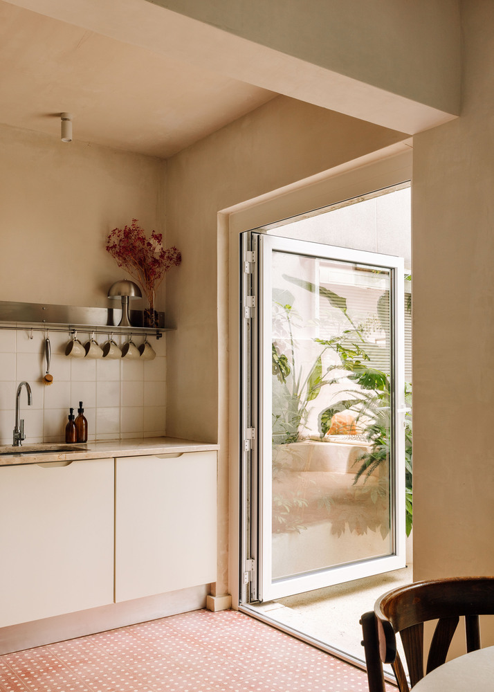 It's not uncommon to find the client sitting just inside the open door, reading a book or enjoying a coffee — a quiet moment held between the rhythms of the home and the city