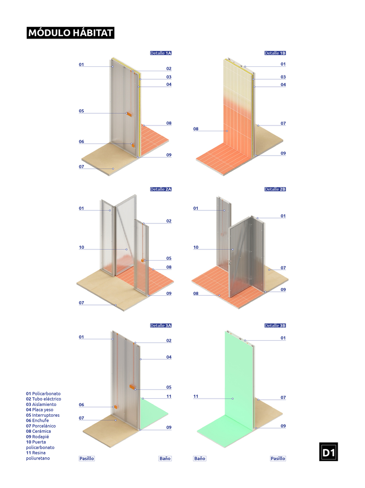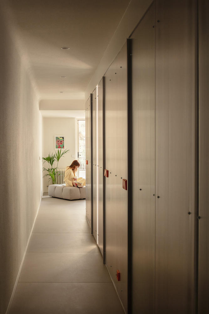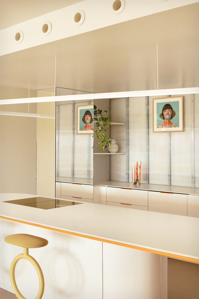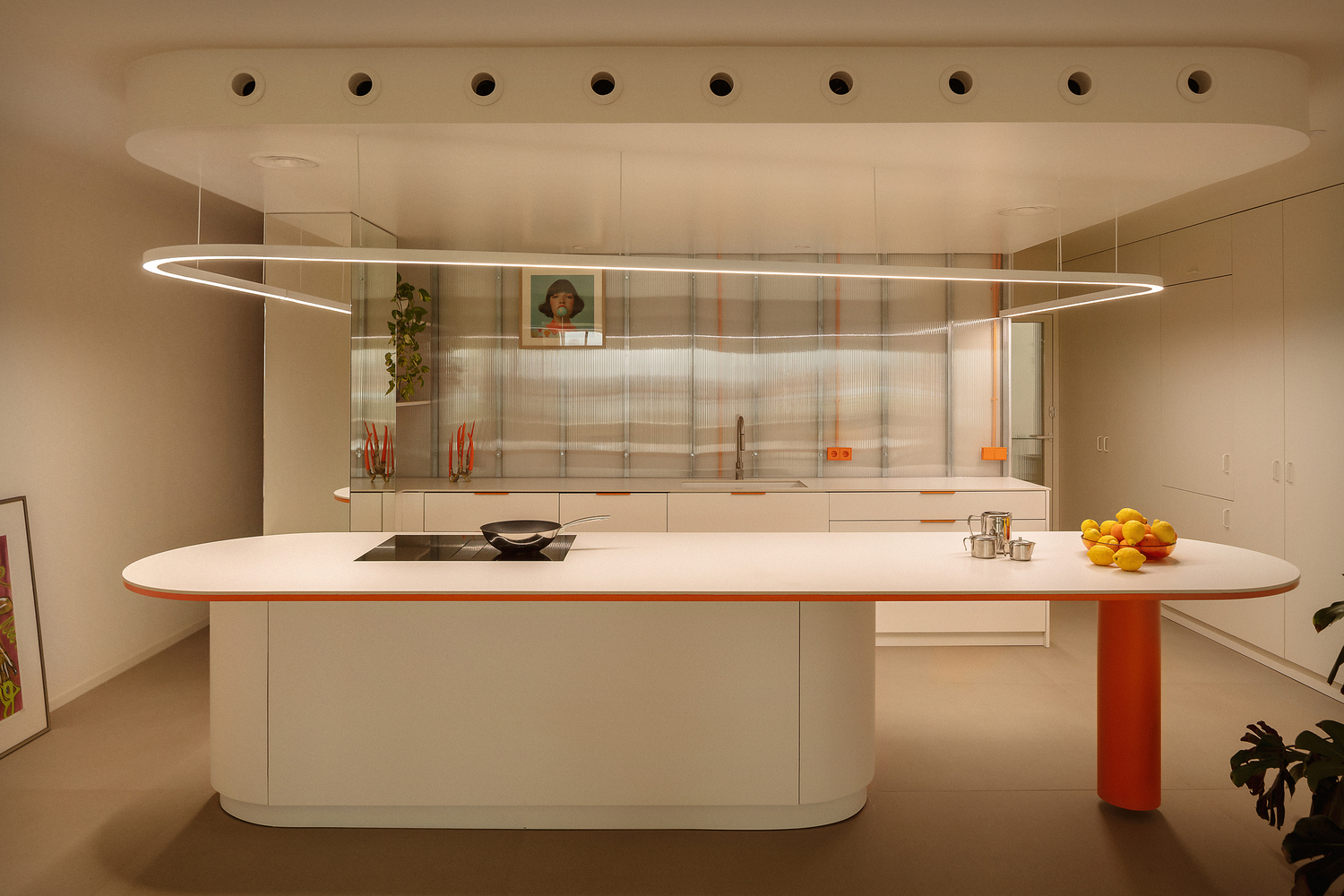 Habitat Module materializes as a compact core that groups essential services: kitchen, bathrooms, storage, facilities, and climate control. Inspired by the design of space modules, this scheme allows for the release of usable surface area and facilitates a more flexible and fluid interior layout.
