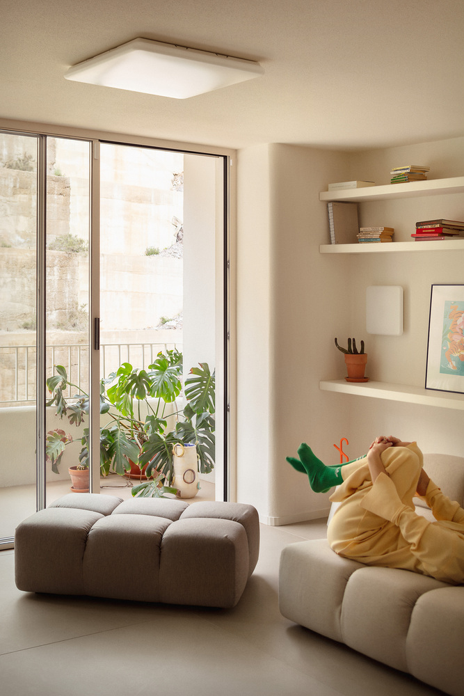 The duality between the central core (compact and technologically advanced) and its immediate surroundings is reflected in the choice of systems and finishes: while the module employs innovative construction solutions, the surrounding space is configured as a warm and earthly landscape, defined by natural textures and organic geometries.