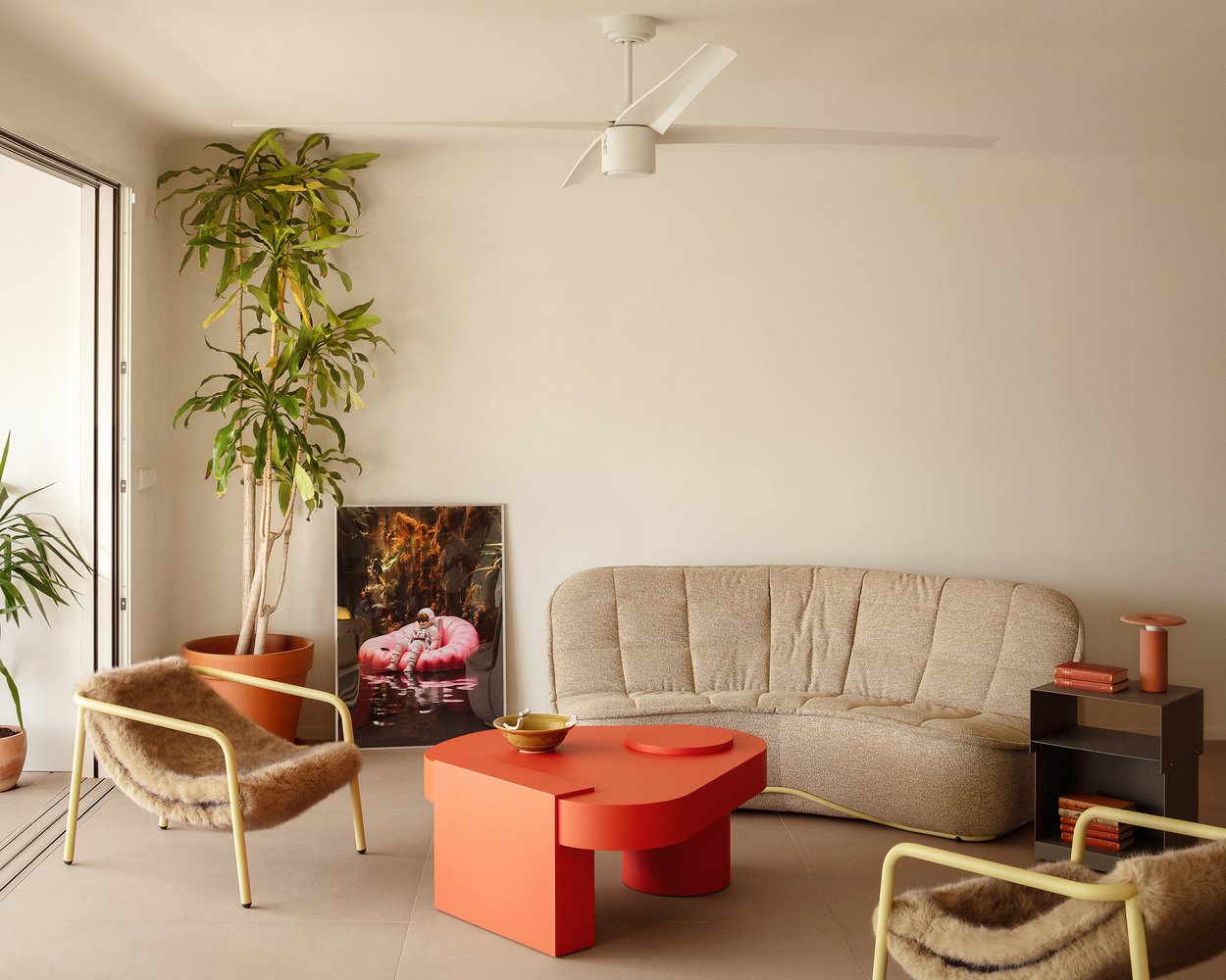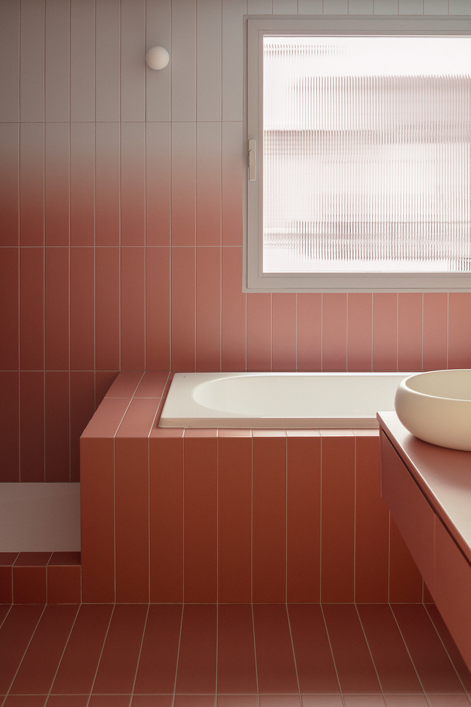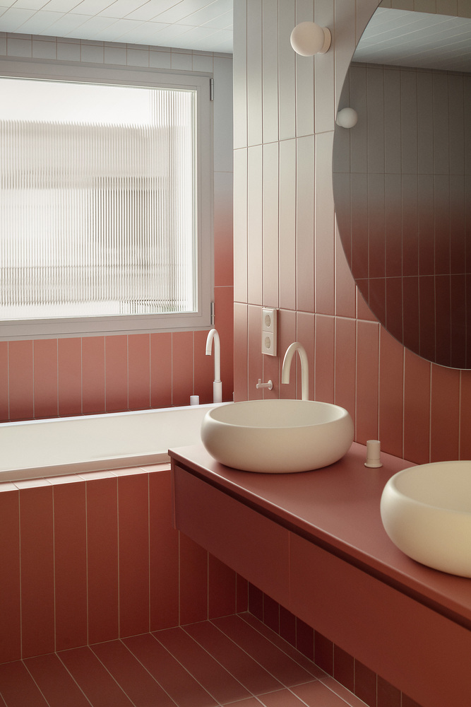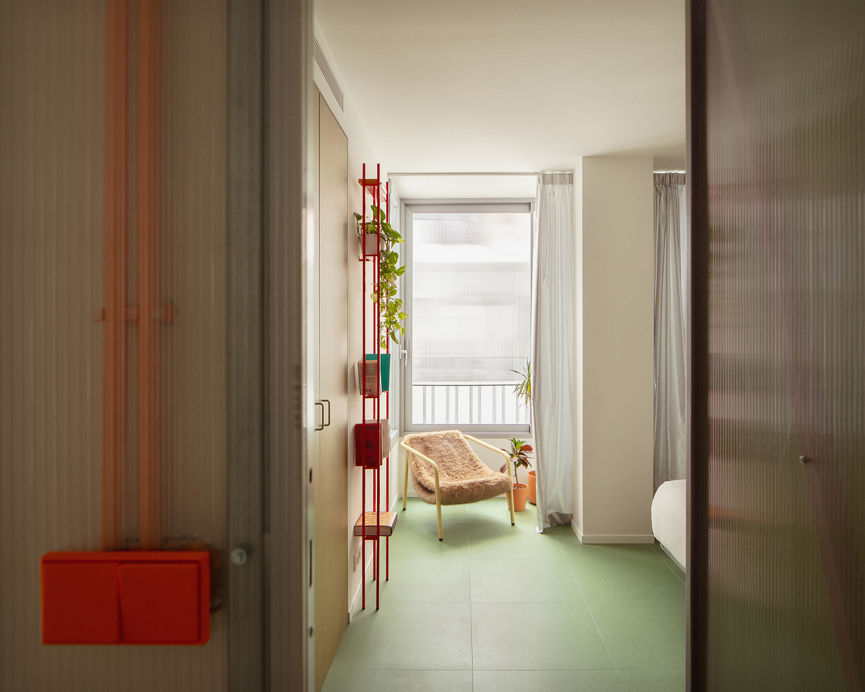 Inside, the spaces are organized through a carefully considered chromatic strategy that defines their character. Some are resolved in a single vivid tone, applied to satin and clean surfaces, generating a clear visual identity.