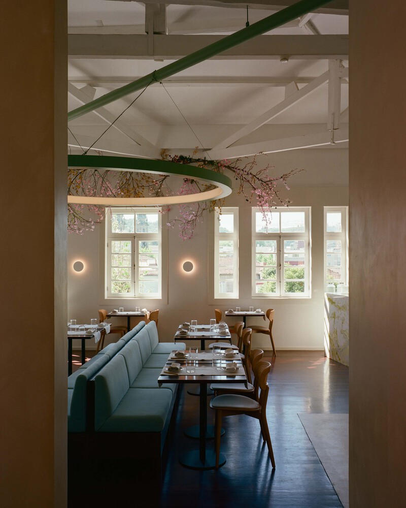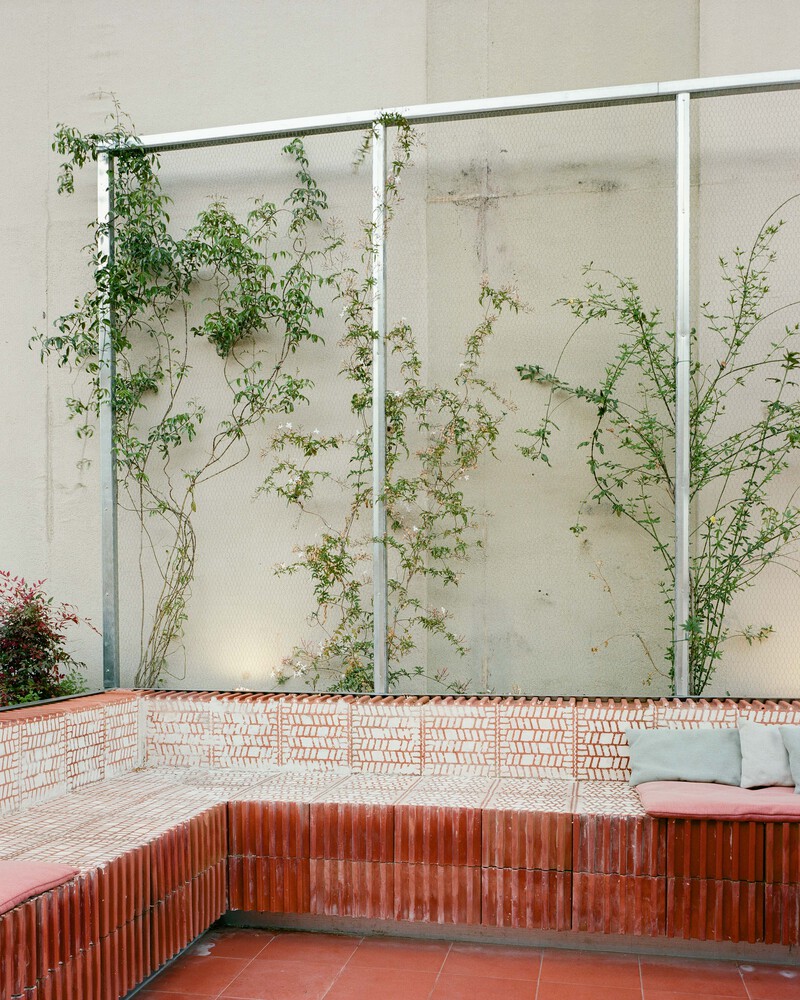 They feel drawn to one another, so while the first aims to expand as much as possible in every direction, almost disintegrating towards the sky, the second defines a limit in what seems to be the promise of a slender roof and a thick brick wall turned inward.