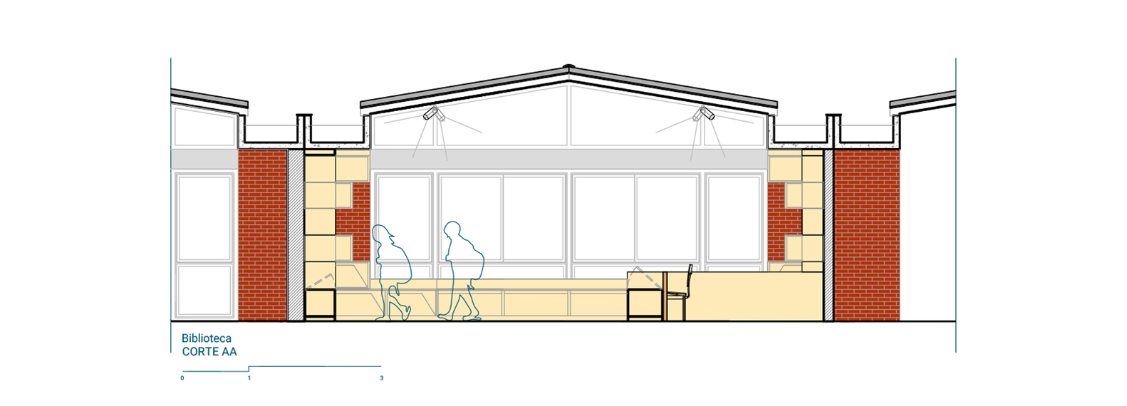 The proposal was to develop a retrofit project to modernize and update the spaces in order to meet new technological demands, uses, and pedagogical practices, while ensuring the preservation of the architectural features that are part of the school's identity.