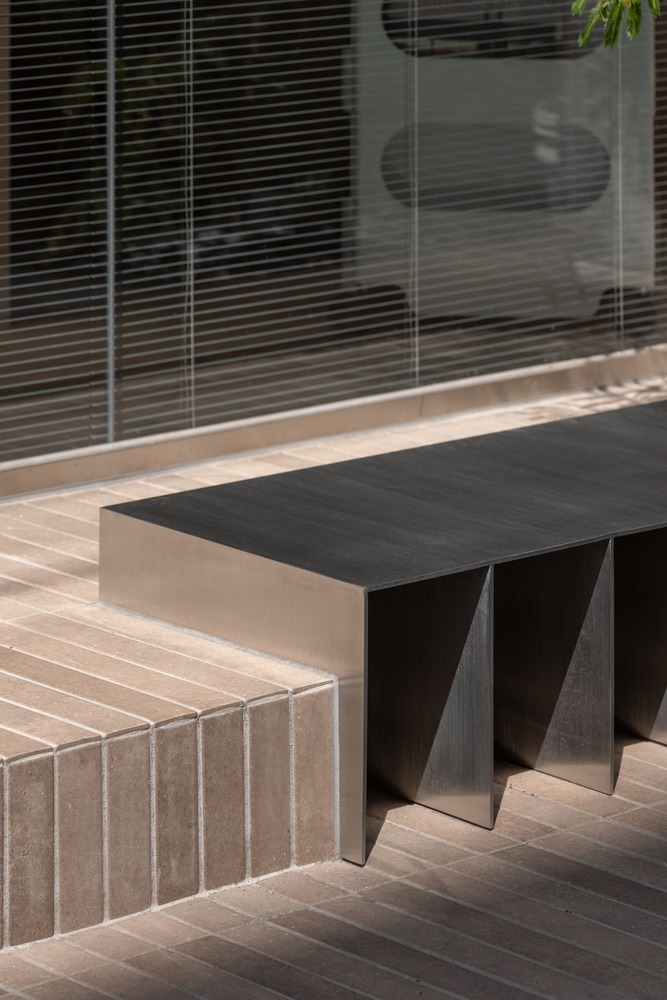 Using the central staircase on the second floor as a boundary, the program was reorganized: one side as a shared workspace, and the other as a private residence.