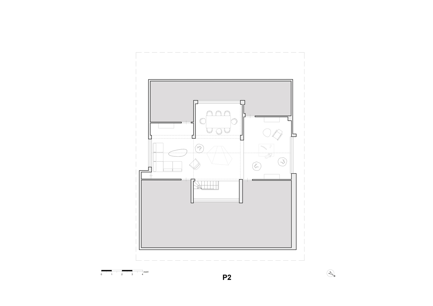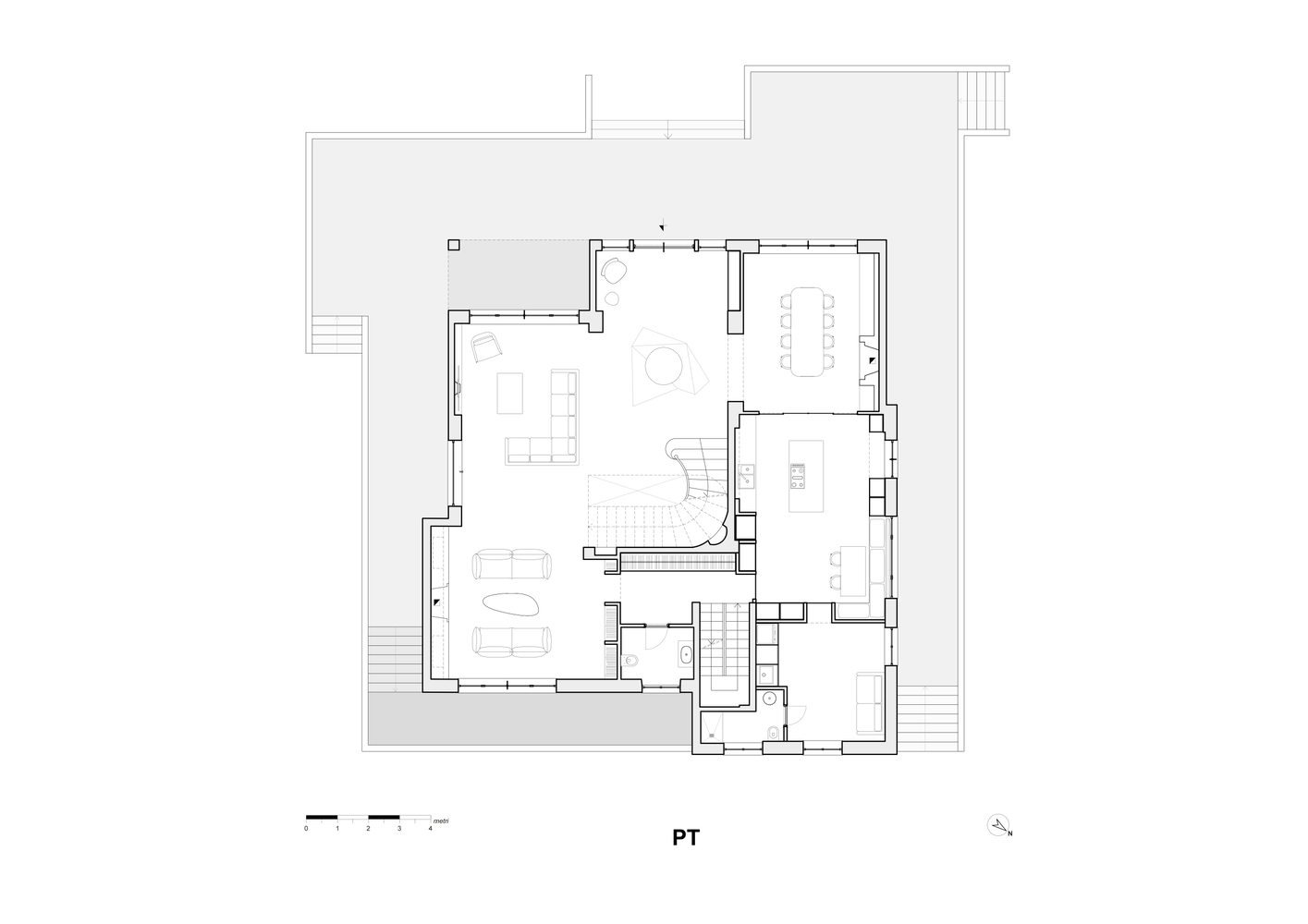 The layout has been redefined by removing most of the corridors and some smaller utility rooms, opening the interiors to create smoother connections throughout the house.