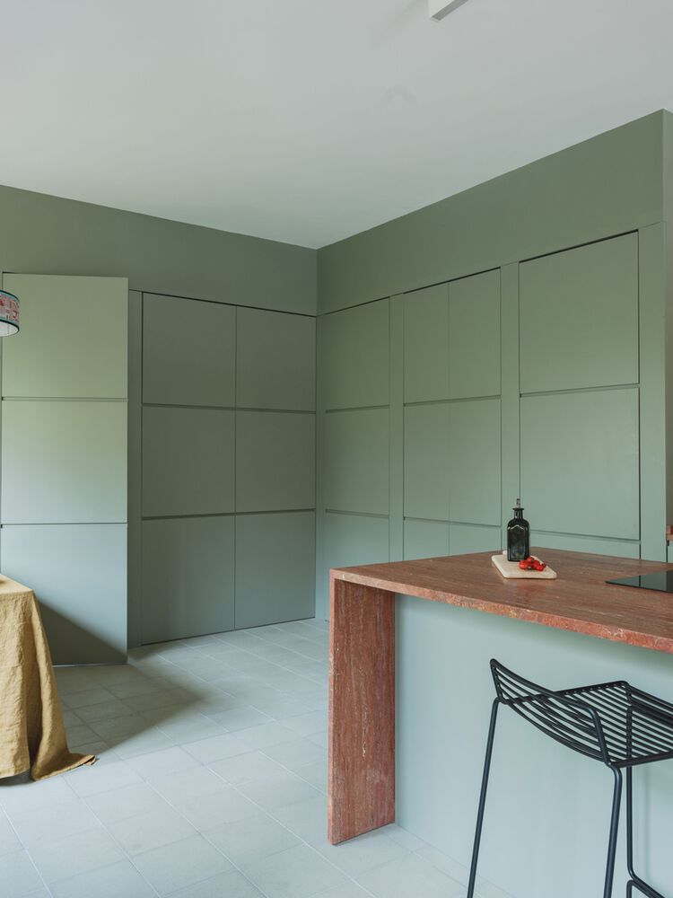 Take, for example, the kitchen windows and Sara's upstairs study, both of which feature a central rhomboid motif—a nod to the original 1950s ironwork found throughout the villa. It was a balancing act: this house delivers stimulating and relaxing spaces in equal measure", explains Matteo Soddu, co-founder of STUDIOTAMAT