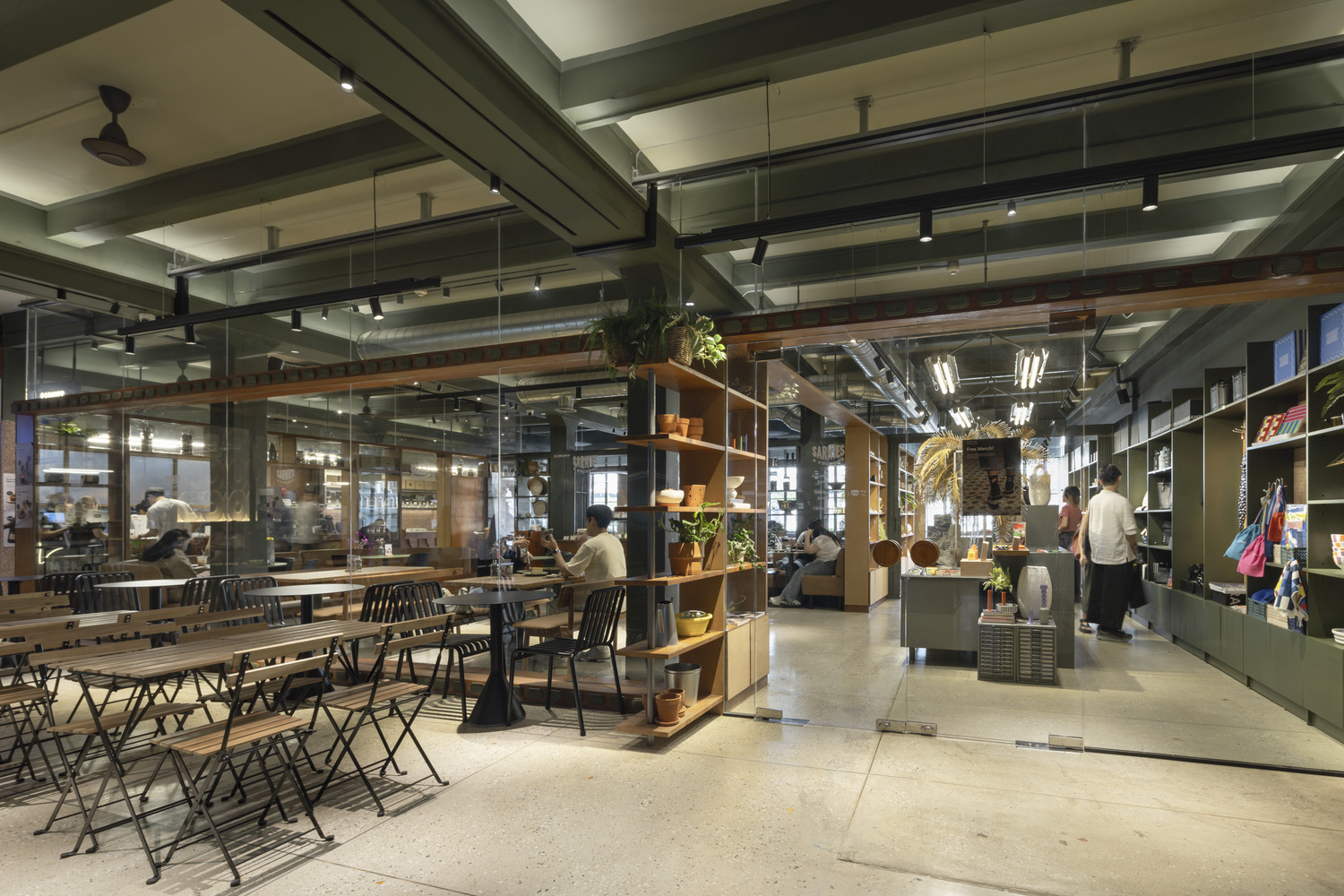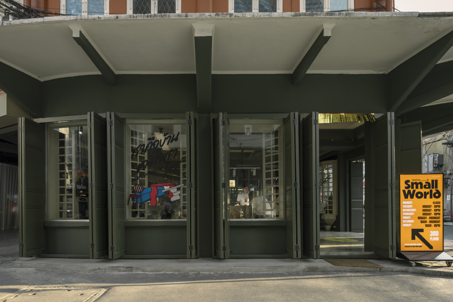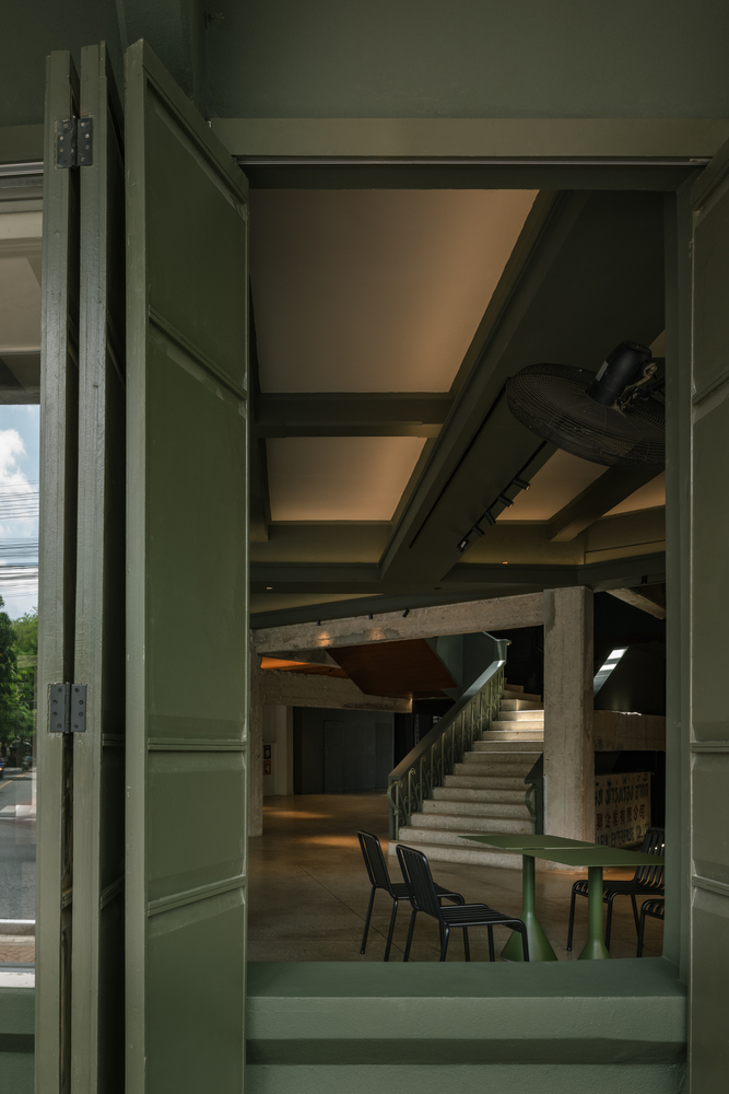 When fully opened, these doors create a seamless, open space with a clear line of sight from the Charoen Krung Road entrance through to the canal at the back, enhancing ventilation throughout the building.