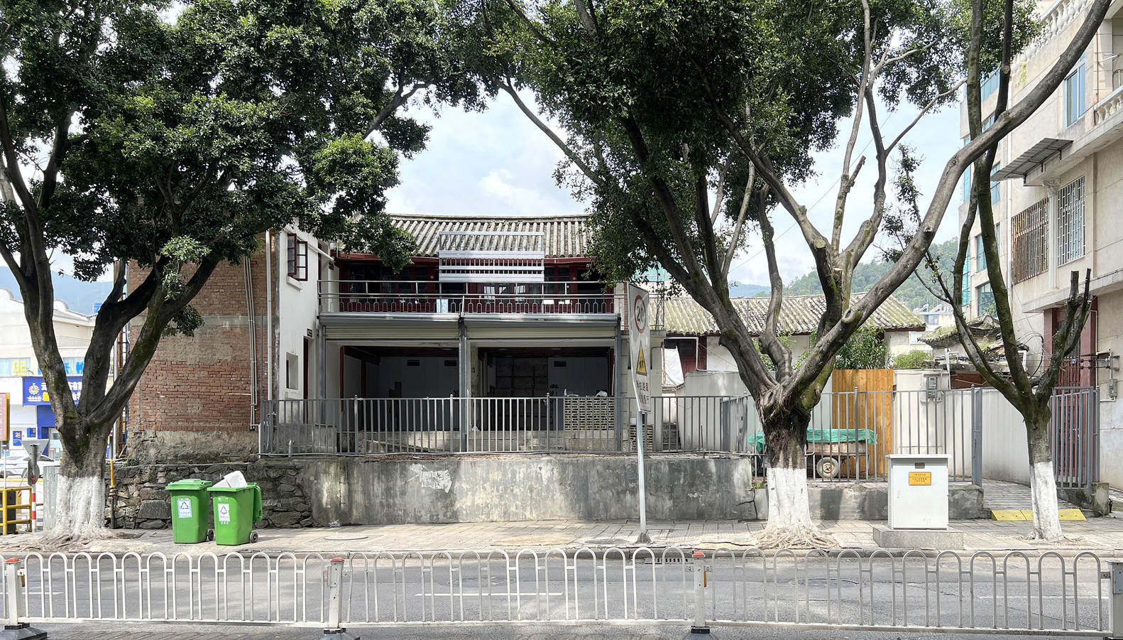 It features a two-story wooden frame structure, with an open eastern facade, while the other three sides rely on brick walls for shear resistance and vertical load bearing. Adjacent to the south side of the main building is a trapezoidal brick concrete auxiliary structure.