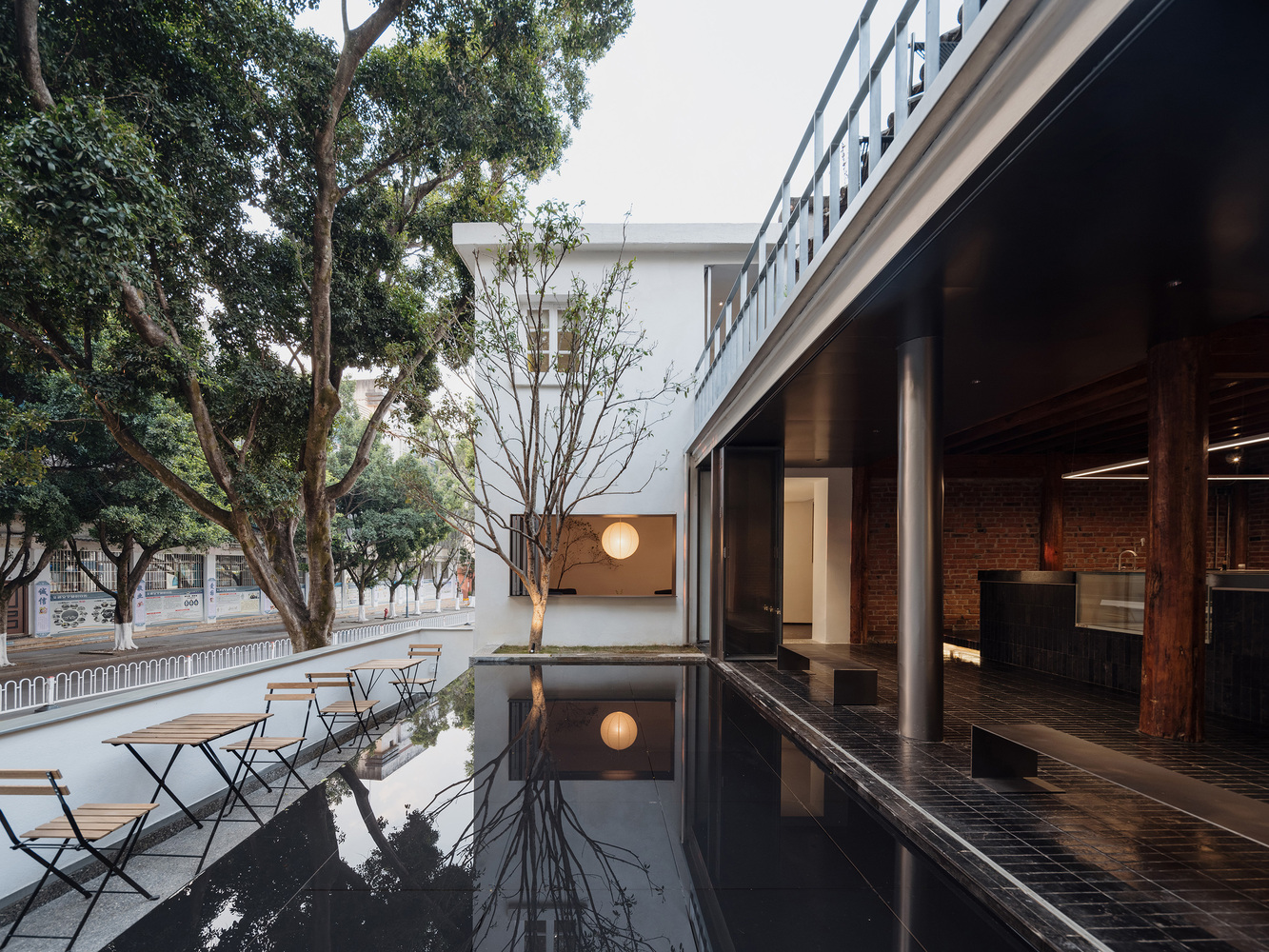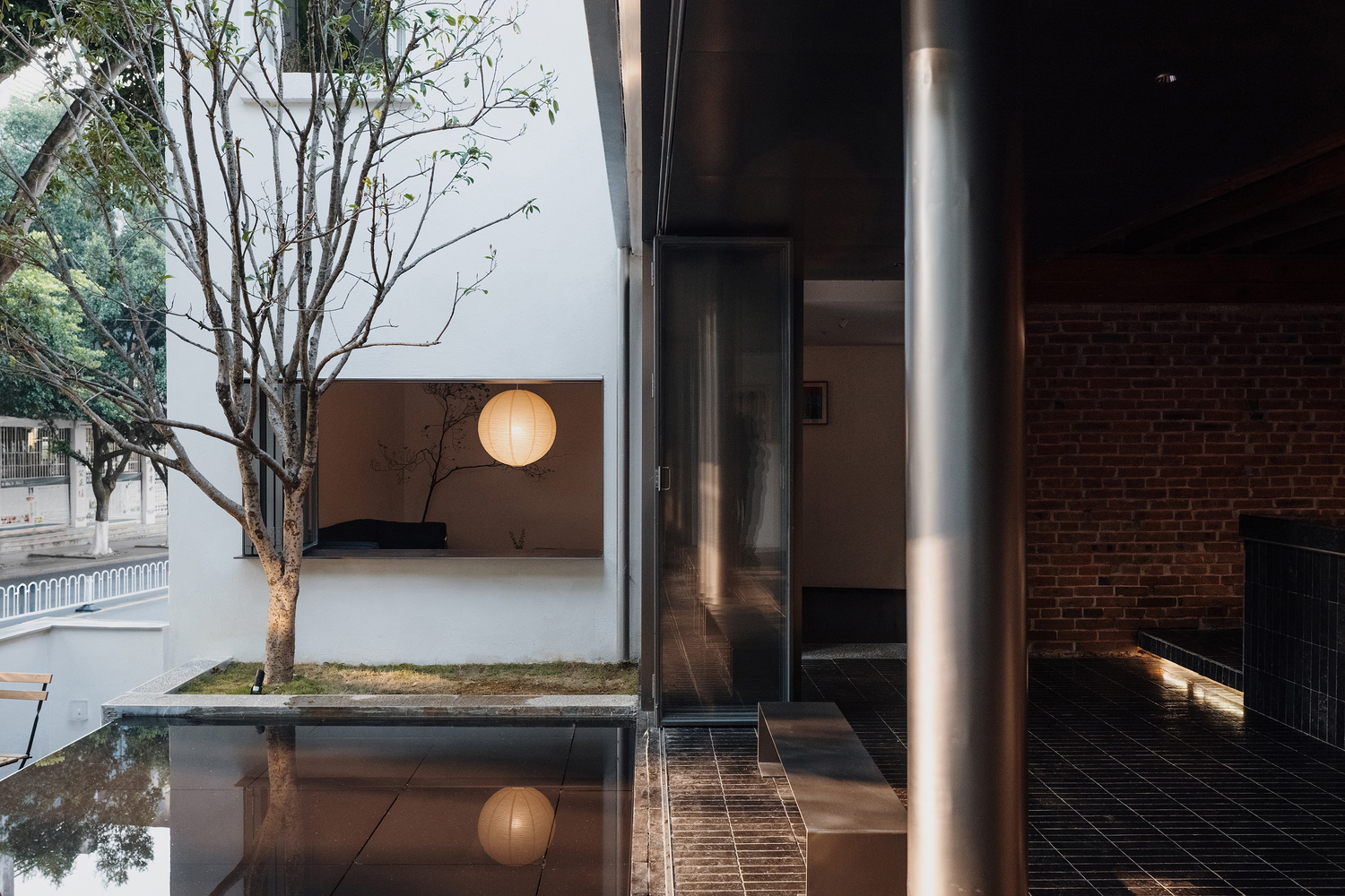 A central water feature and an osmanthus tree were installed in the inner courtyard, harmonizing the relationships between the building, courtyard, and trees, while emphasizing the serene atmosphere of the entire space.