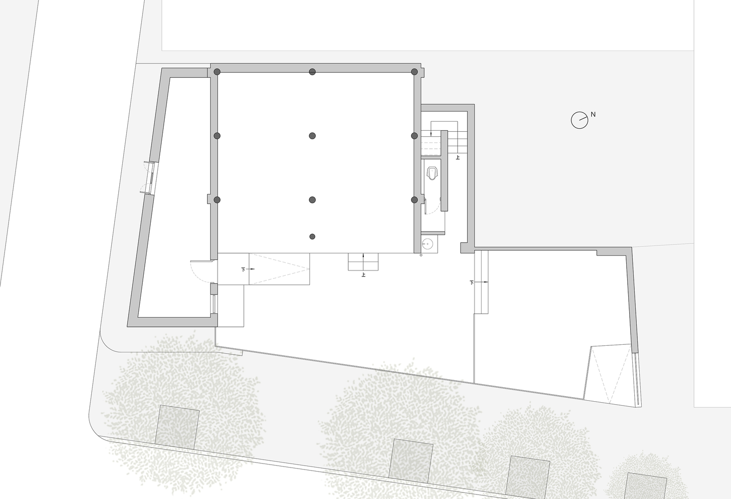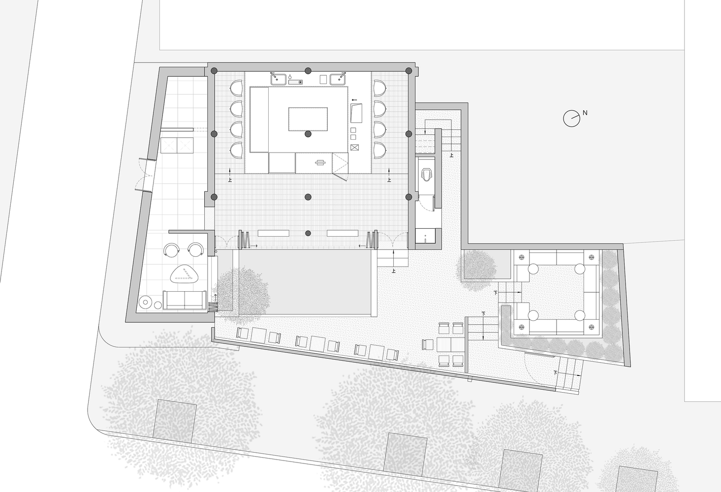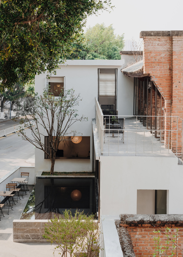 Despite the original site being 1.4 meters above street level, the east-facing building and courtyard are still exposed to urban hustle due to heavy traffic and pedestrian flow on the eastern road.