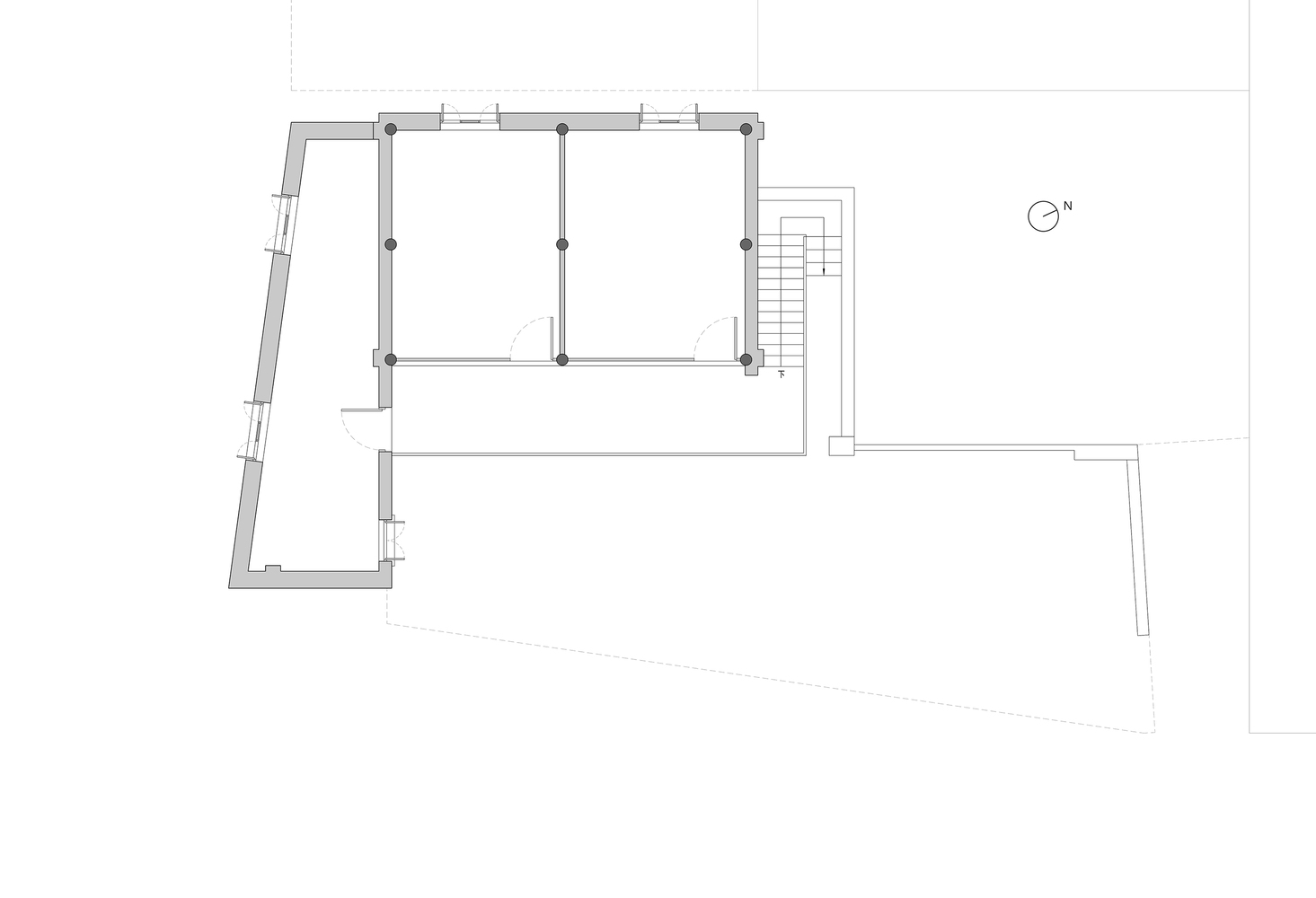 The remaining exterior walls were then painted white to serve as a backdrop, allowing the restored sections to naturally emerge as the focal point of the site.