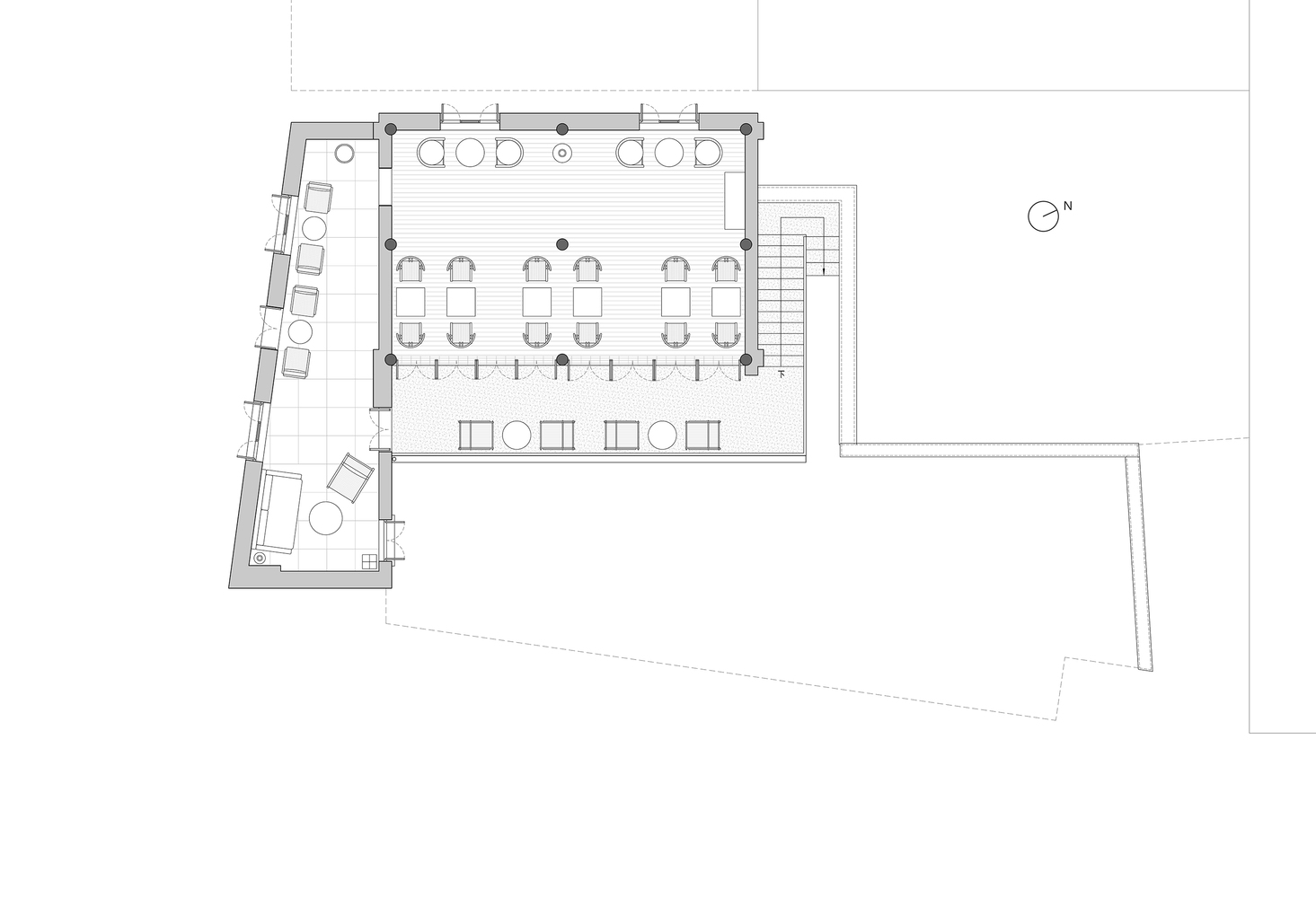 While the restoration of the old residence is managed from an urban perspective, the ambiance of the cafe directly shapes the customer experience.