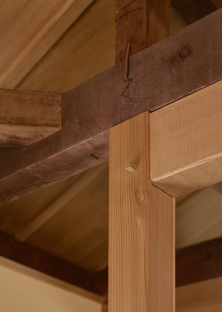 This softens the linear, industrial feel and gives the house an organic presence. Deeply tanned beams hold fifty years of memory.