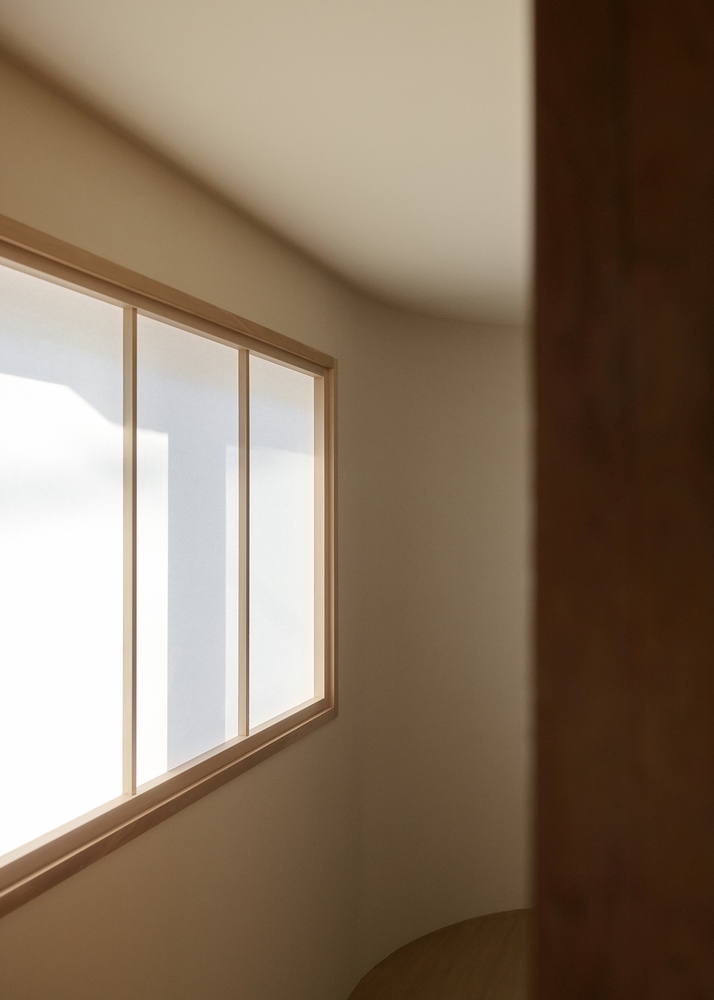 Elements appear and disappear as the space extends deeper, inviting occupants into a soft labyrinth, much like the inside of a seashell.