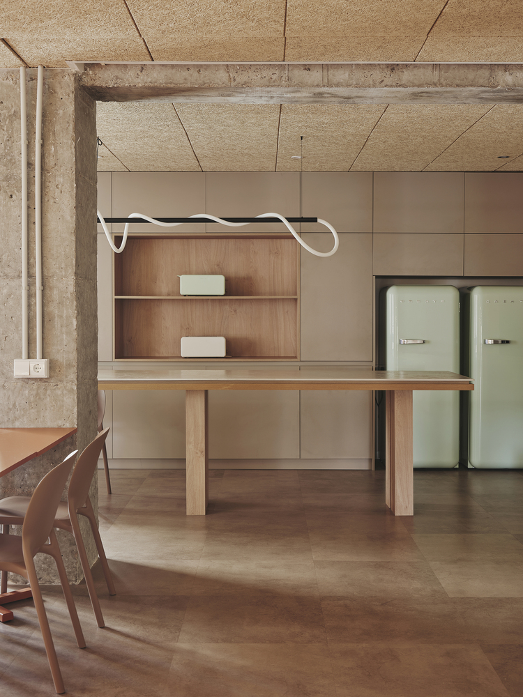 After meticulously defining the needs program with the client, it was decided to custom-manufacture large work tables between the pillars, thus freeing up the spaces between the forest for circulation.