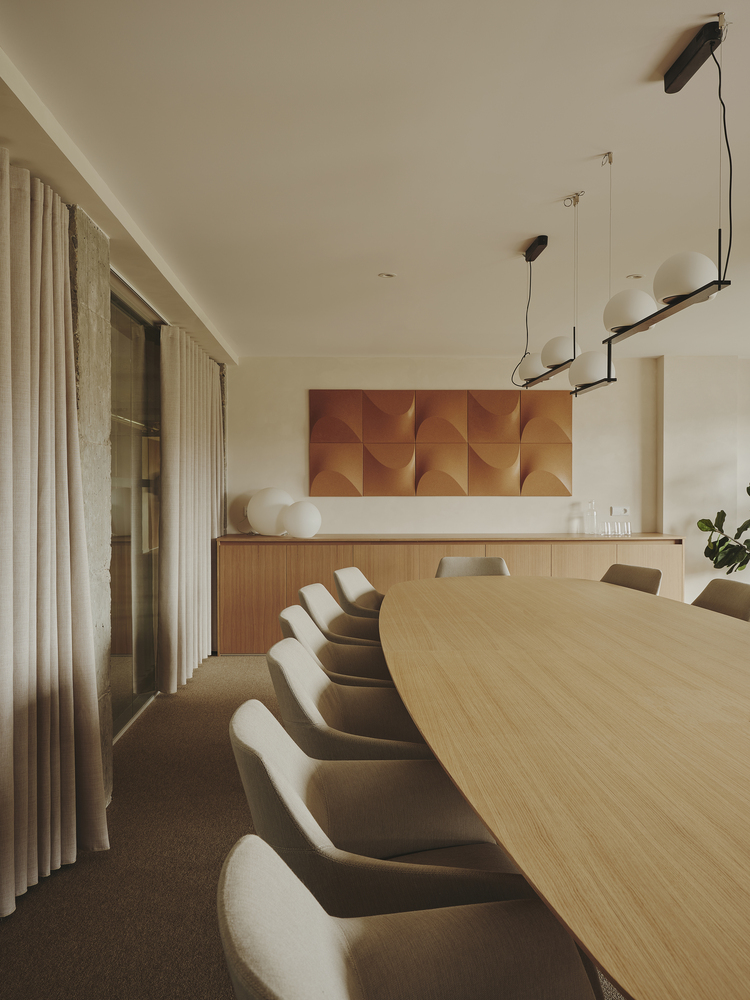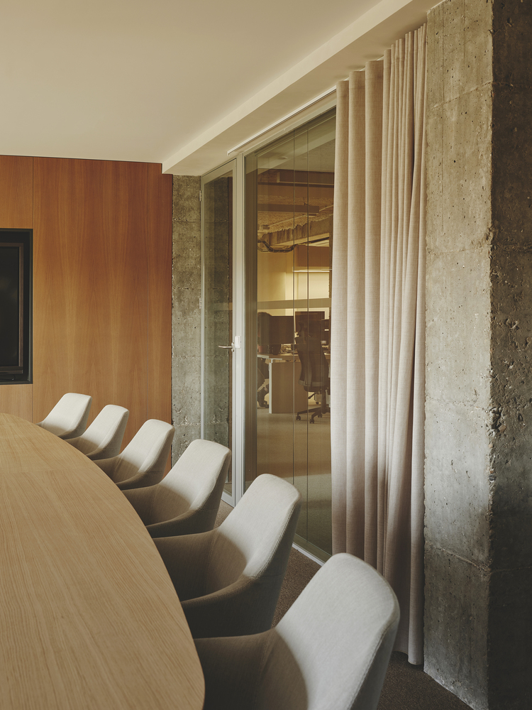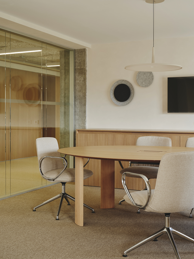 The meeting rooms and executive offices are located on the façade with views over the park, making this the most visited area by the company's clients, and thus integrating the reception and waiting area there.