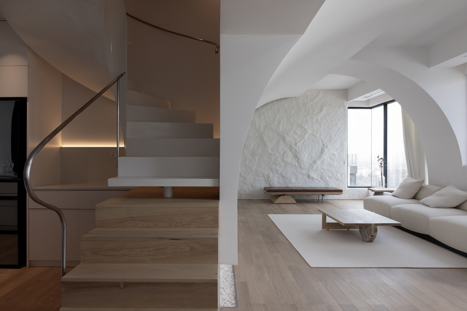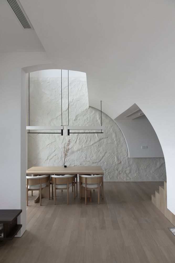 At its core, the design manifests as two interwoven vaulted spaces, each embodying a distinct spatial and emotional quality.