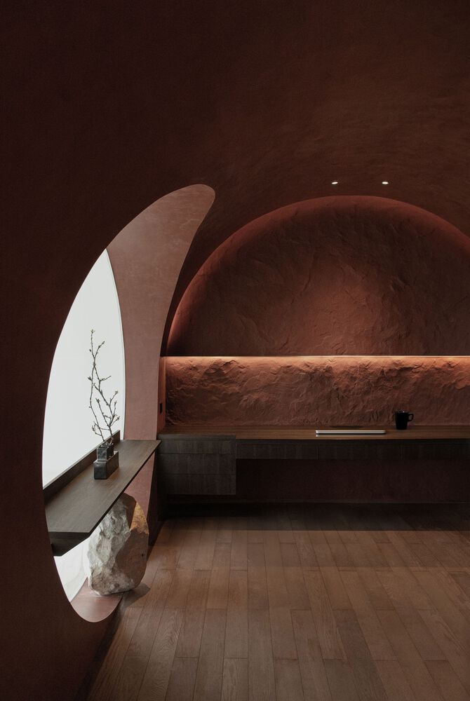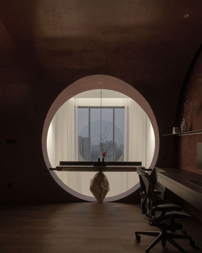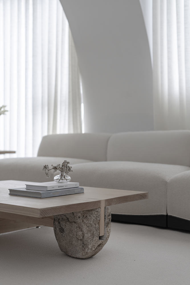 The design explores the essential idea of home through the abstraction of a cave, a sanctuary that offers both protection and perspective, while drawing inspiration from the Moon, a symbol of duality and emotional depth.