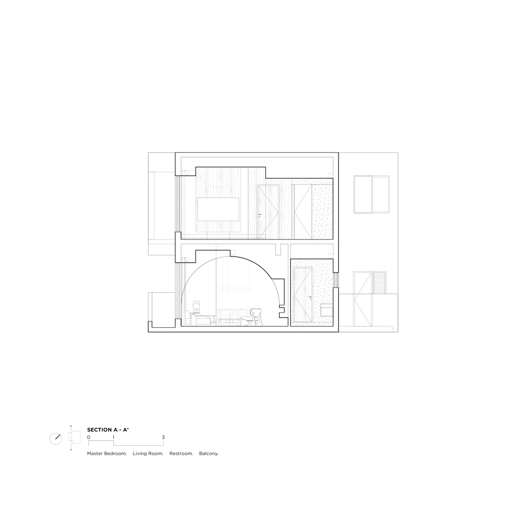These carved openings layer light, shadow, and depth while framing selective views toward the Saigon River. Functional niches emerge from these cuts, offering moments of placement and discovery.