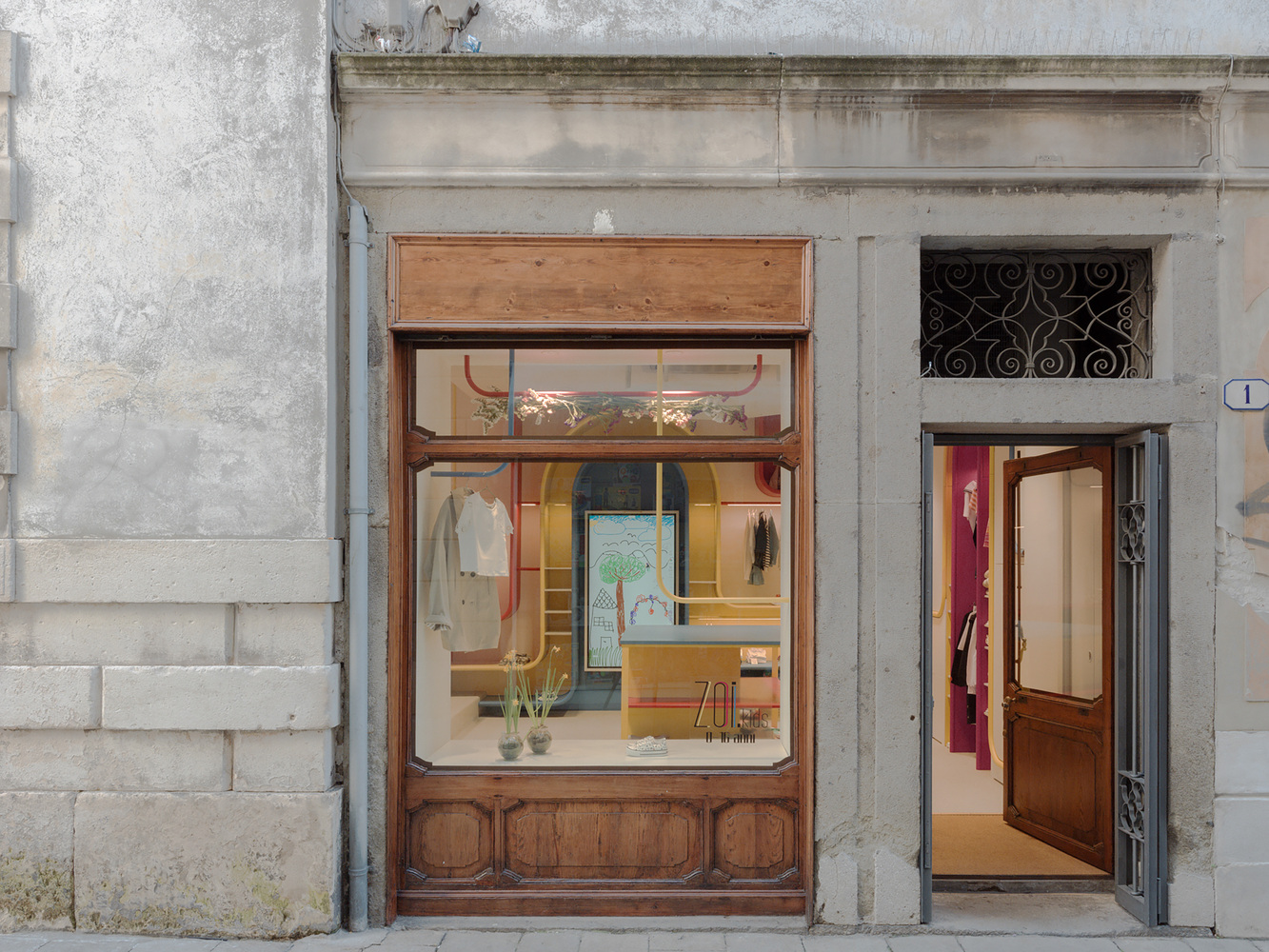 The result is a contemporary retail environment that introduces an element of surprise and visual contrast within its historic urban context.
