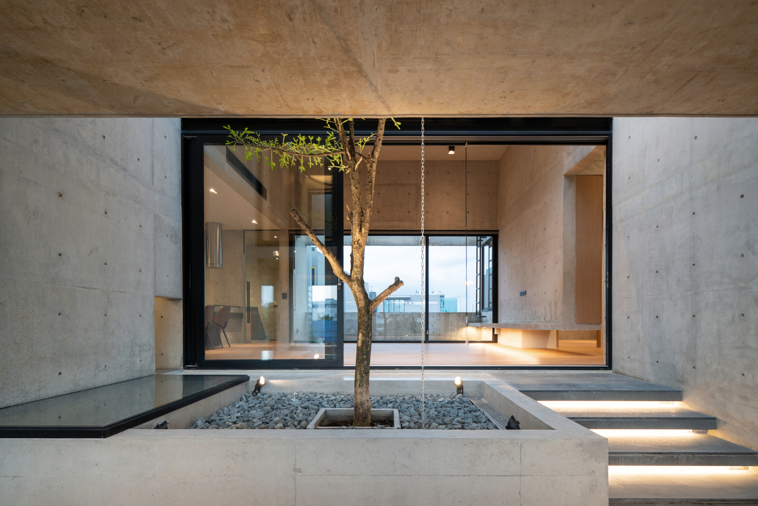 At the heart of the residence lies a central courtyard with a Devil Tree (Alstonia scholaris), visible from nearly every room.