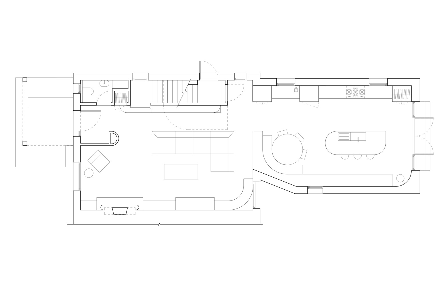 Extensive structural interventions enabled a fundamental reordering of space. The result is an expansive plan that adds 140 m² (1,500 ft²), increasing the functional area of the home by almost 60%.