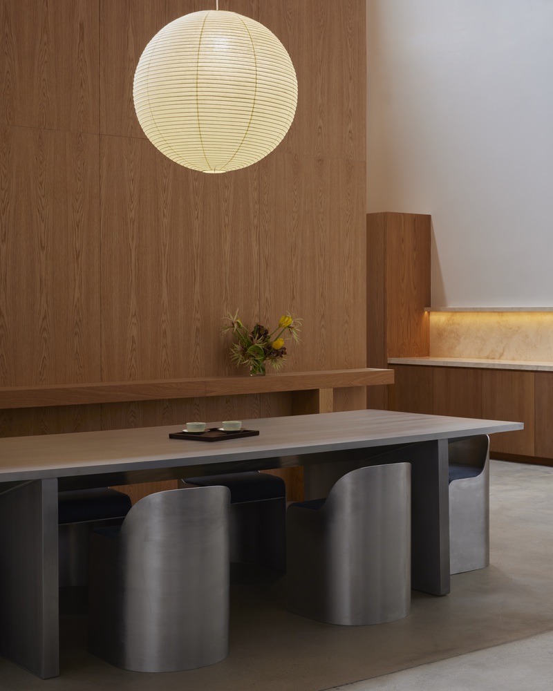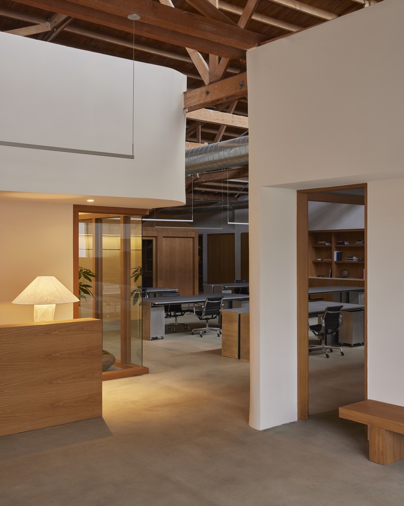 The design takes cues from both Californian and European modernism, prioritizing material richness and spatial flow to foster collaboration, ideation, and listening.