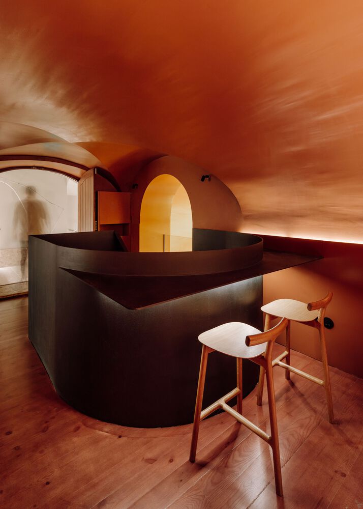 Throughout its interiors, Nómada Chiado is defined by its rusty-red hues – inspired by the Japanese shade known as aka, which denotes protection and celebration.