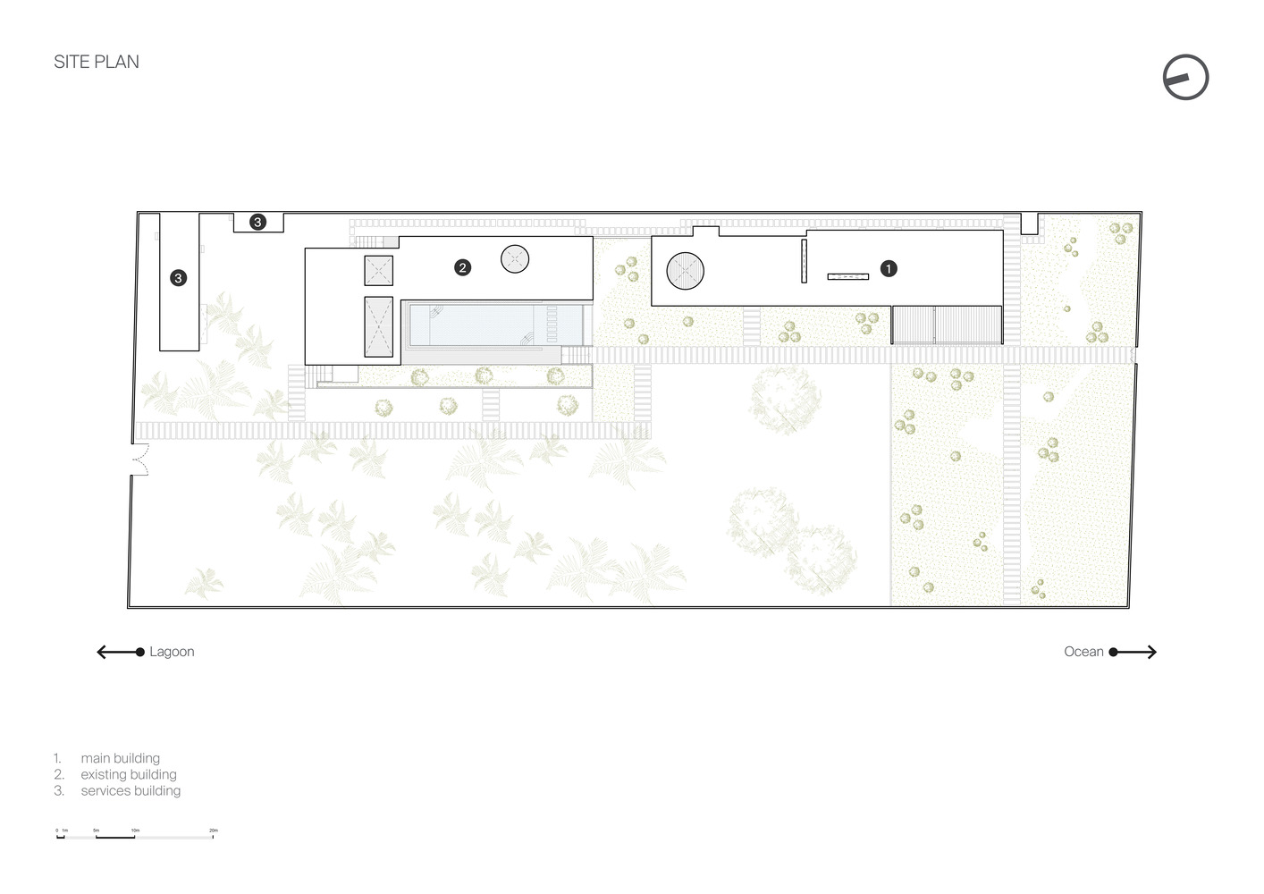 Passive design strategies, from carefully positioned breeze blocks that enhance natural ventilation to openings aligned to capture cooling coastal winds, reinforce a rhythm of movement and pause, connection and solitude, echoing the ebb and flow of life along the coast.