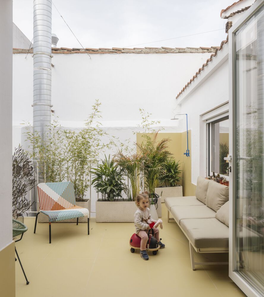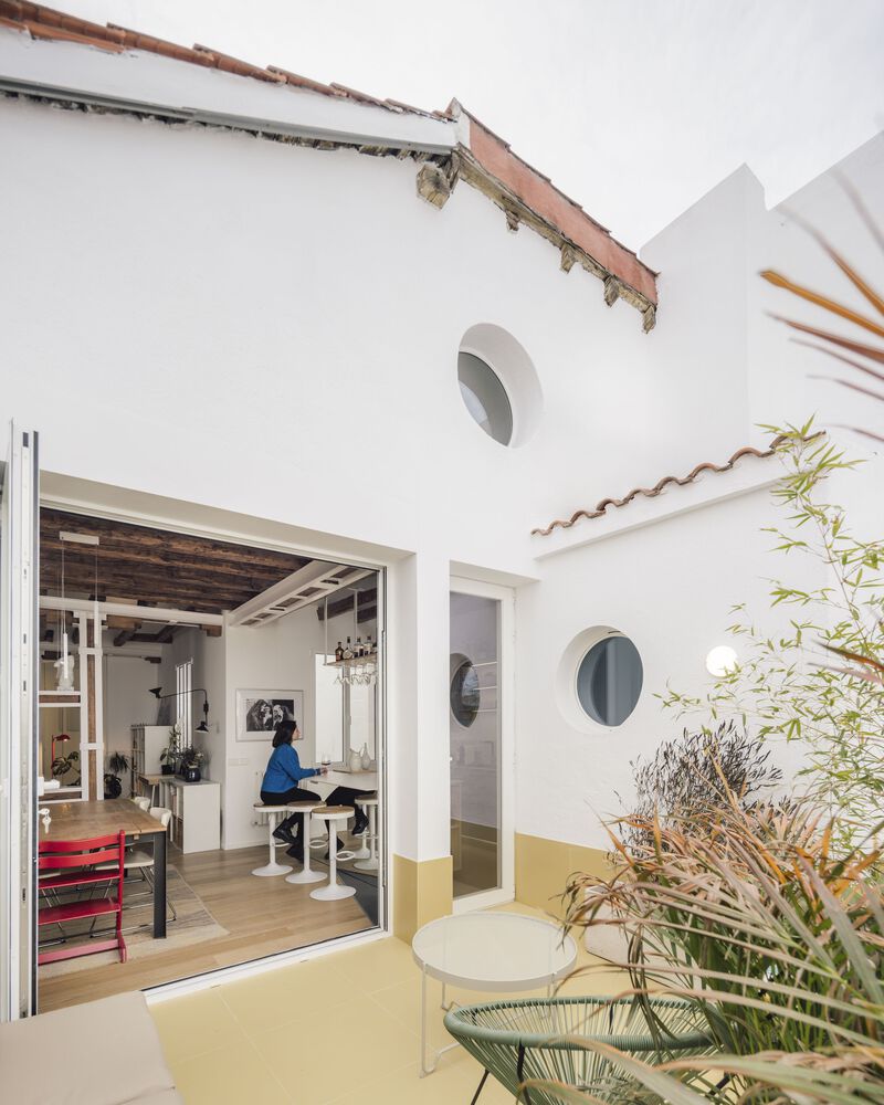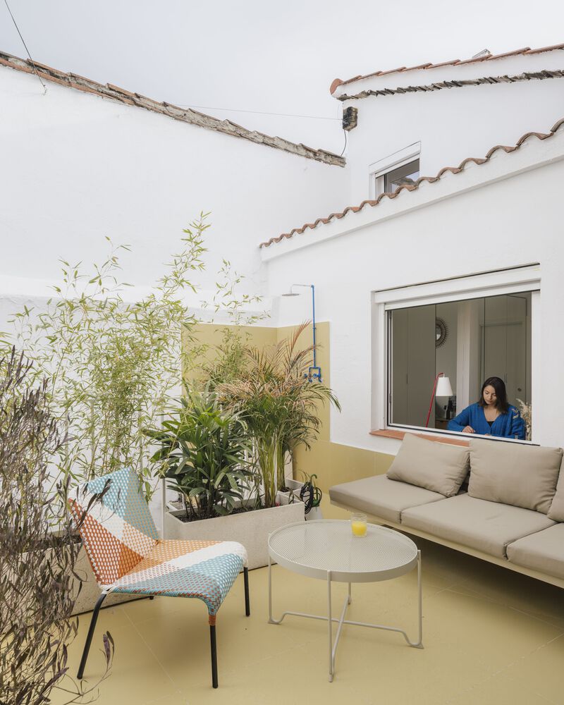 The terrace, 15 m2 and located at the end of the 21 linear meters of the house, is, together with the skylights, the most direct source that floods the entire interior with light, and that, in addition to being a meeting space, also contains a jacuzzi for winter, and summer days.