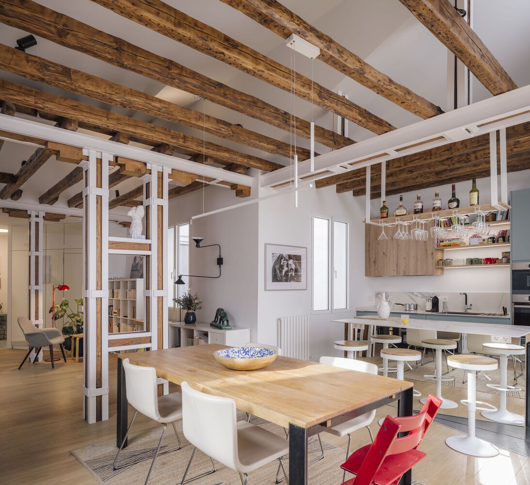 The scale of the furniture that occupies the house is an echo of the different lives in the different places where Marion and Paul Franck have lived; a system of objects acquired here and there in which some as old as some chairs of the nineteenth century are intermingled with classic designs of the twentieth century or with others from IKEA.