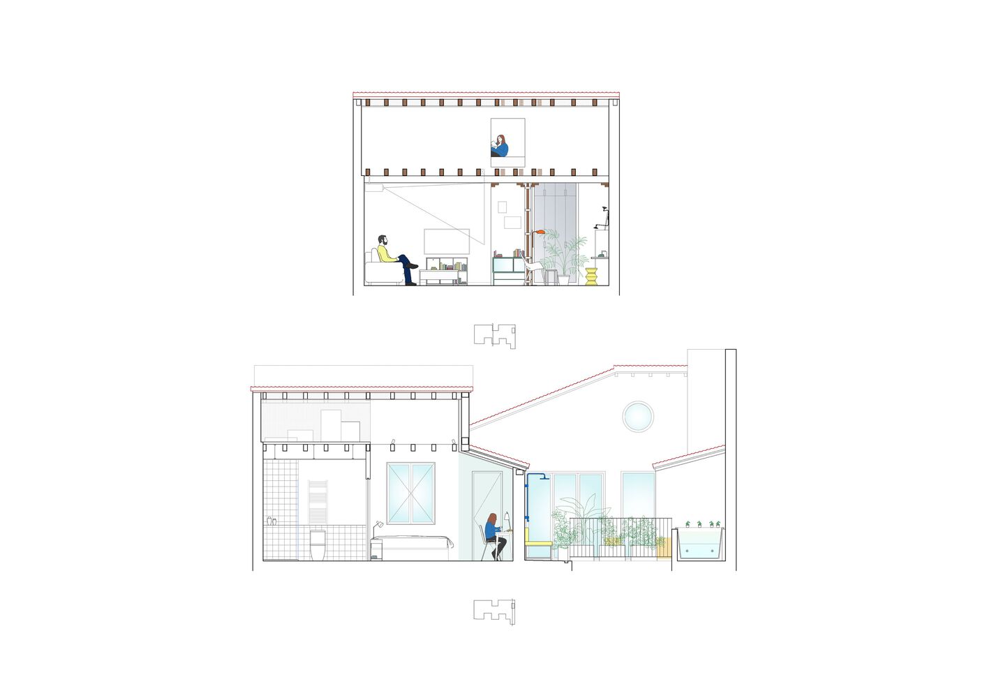The alterations to the house are projected from the spatial and structural understanding of this particular cover in order to return to each of the spaces of the house, without exception, the prominence they had lost.