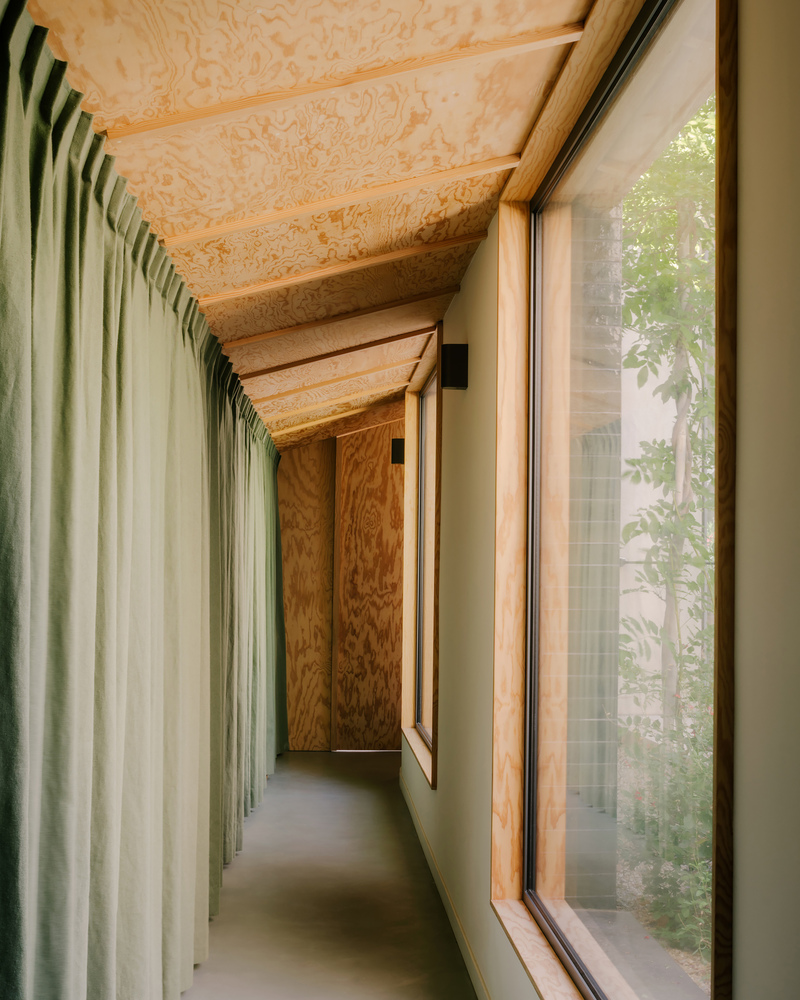 from the house, one goes down to access the new corridor, which runs along the garden with views framing the vegetation, towards the outbuilding.
