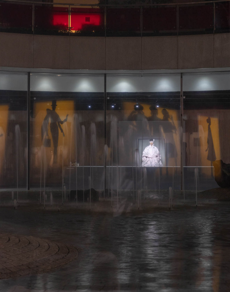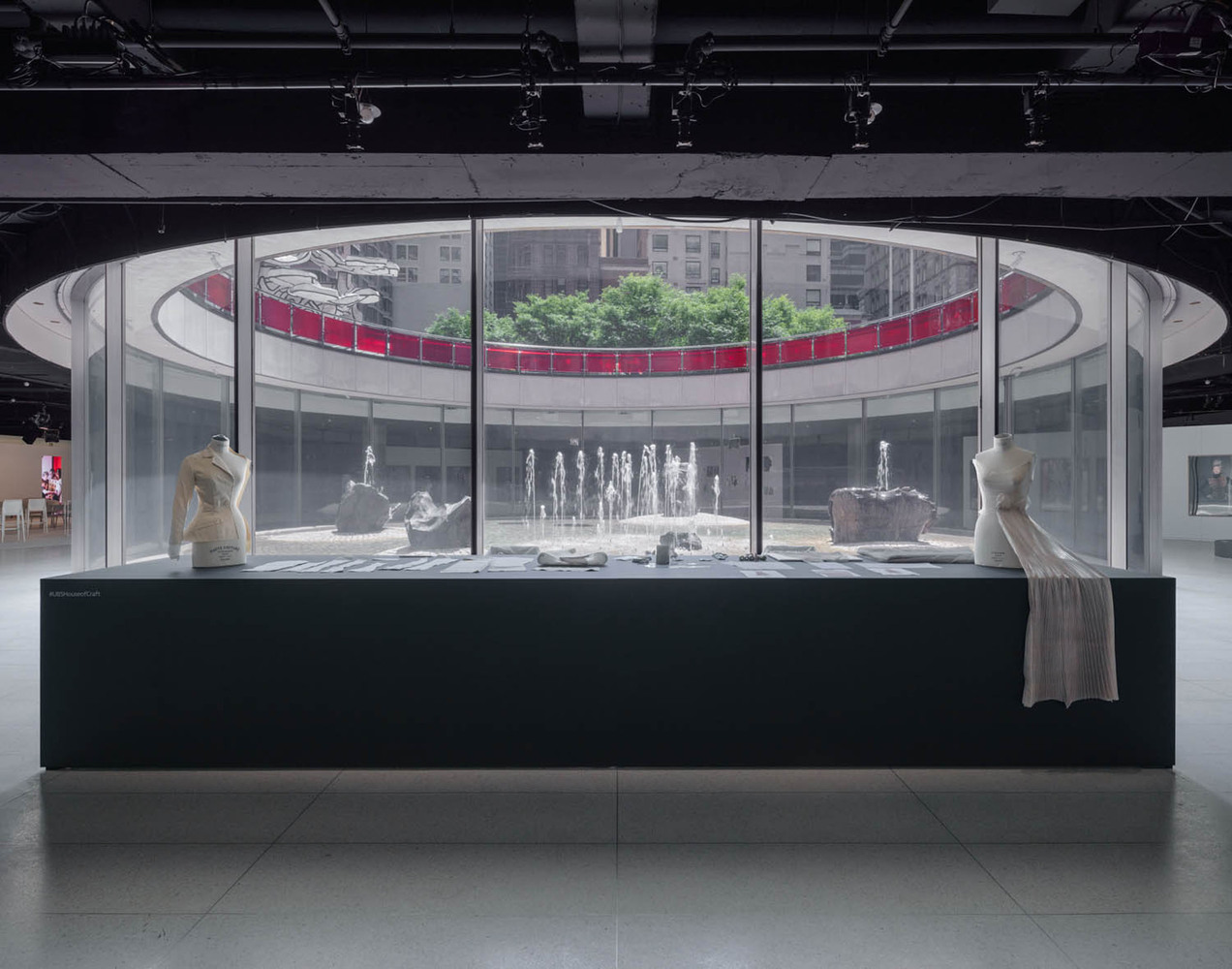 Ten display walls crisscross the 30,000sf (2,787sm) interior and orbit around Isamu Noguchi's Sunken Garden (1964). The rugged water and basalt landscape sets the perfect backdrop for the refined haute couture pieces by all the House's past creative directors.