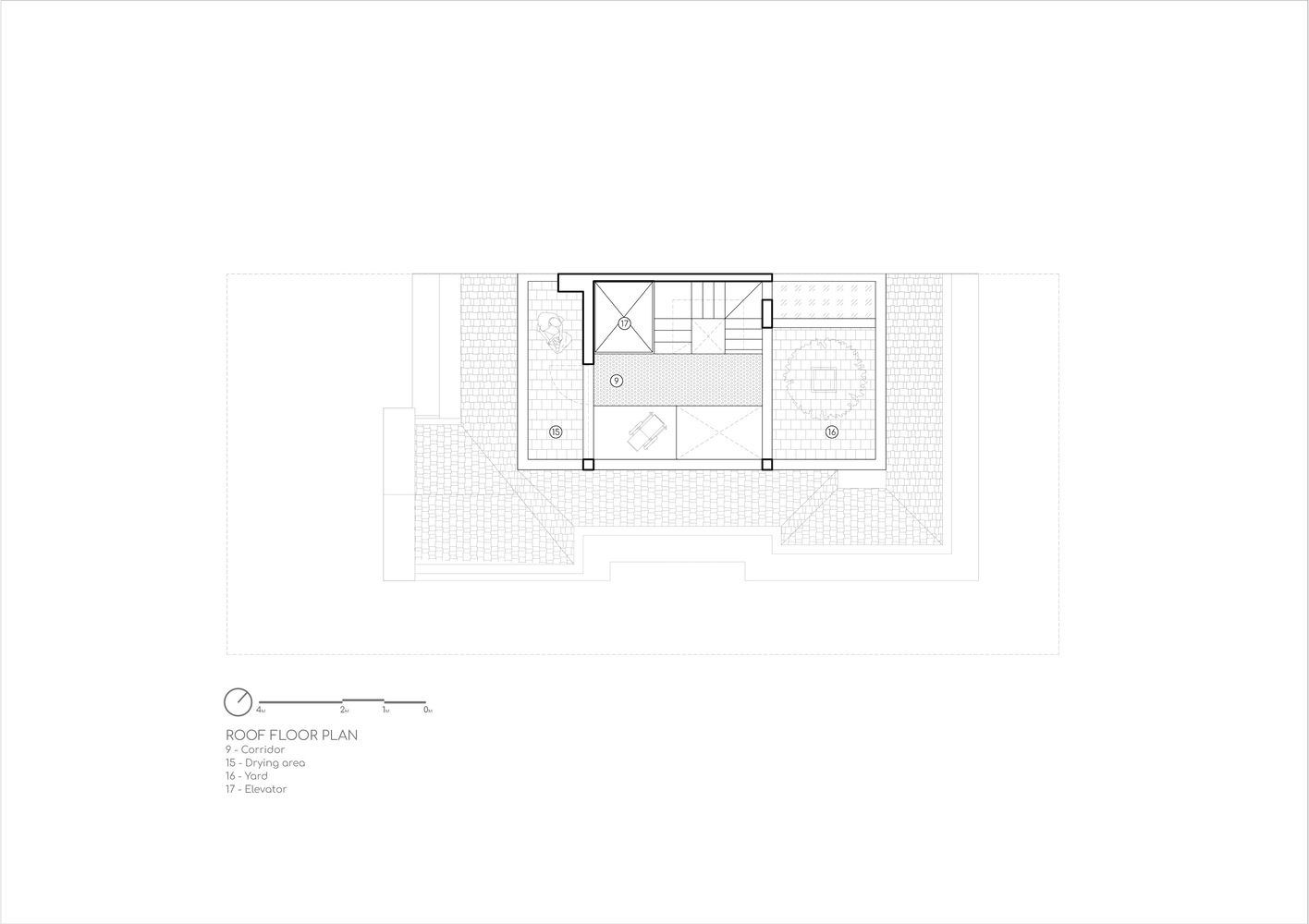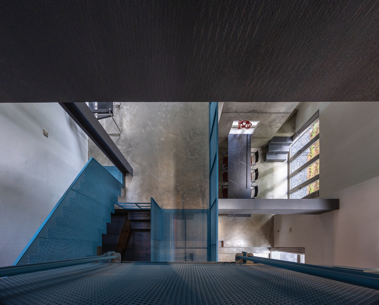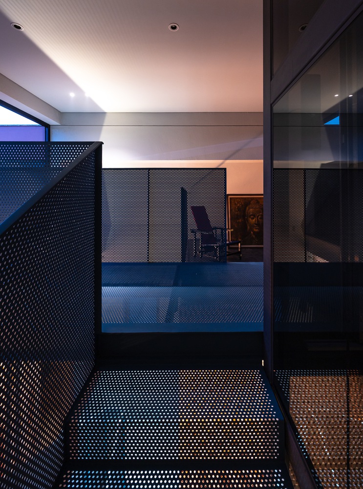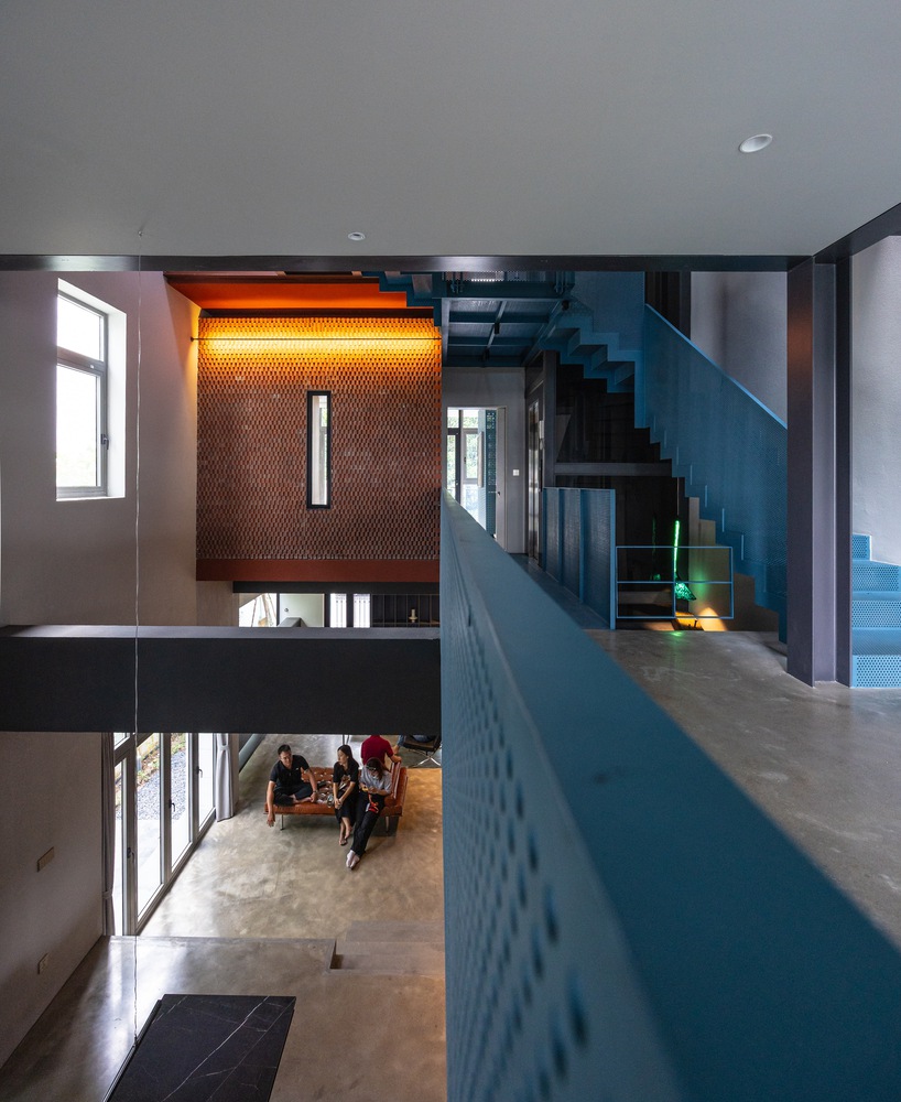 Internal circulation is articulated as a dynamic framework, flexibly connecting staggered floor planes, thereby establishing spatial continuity and introducing a renewed visual flow throughout the house.