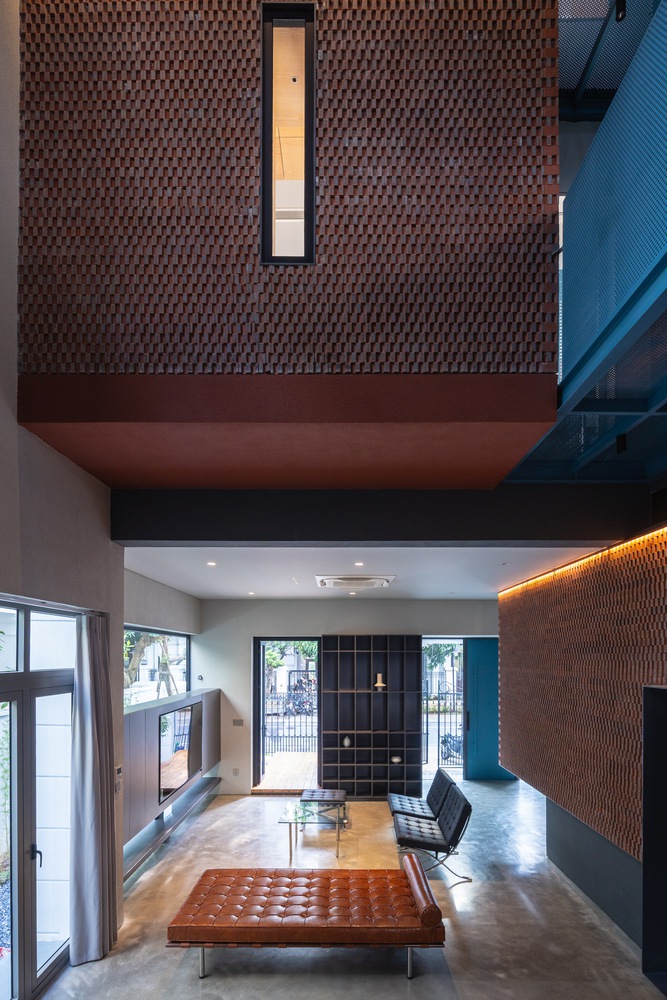 The dialogue between the natural material surfaces—fired brick, steel, timber, and exposed concrete—and the modulation of light transforms the domestic interior into a field of equilibrium, where material tactility and inner stillness coexist.