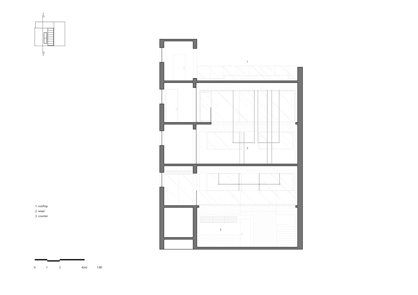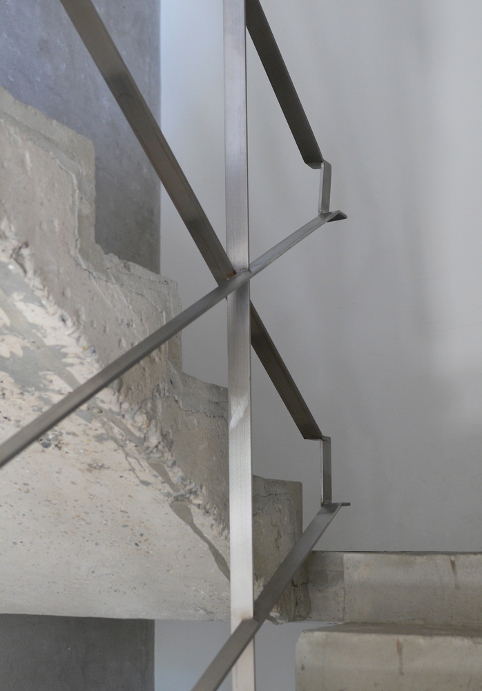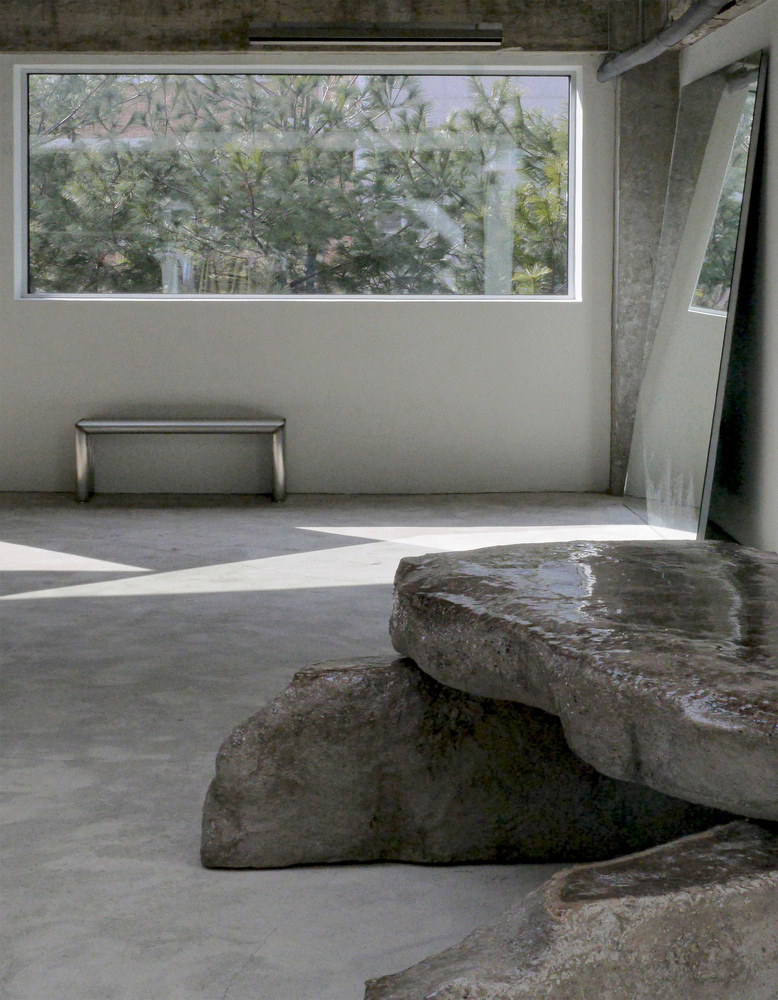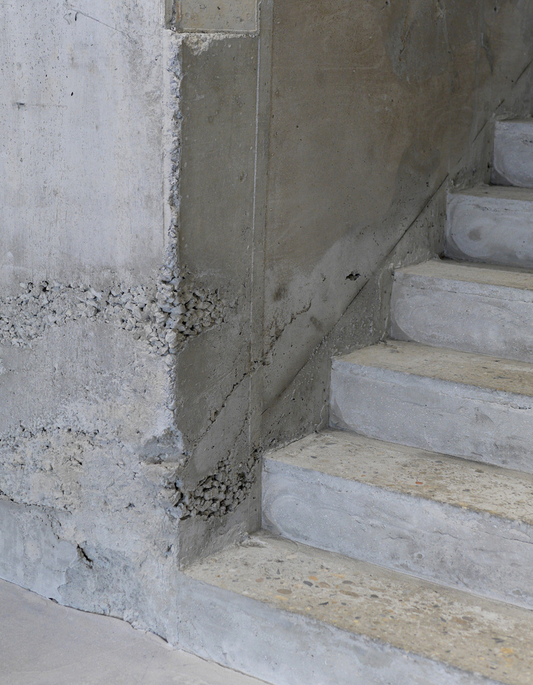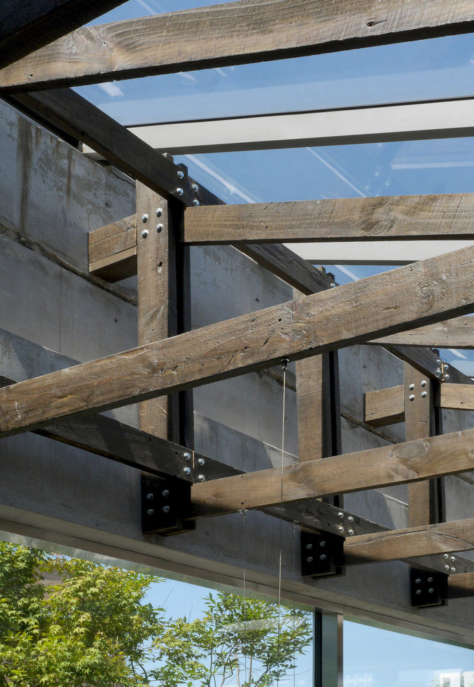 The first and second floors were combined to allow light and air to mix, while the traces of the slabs, beams, and columns were left exposed.